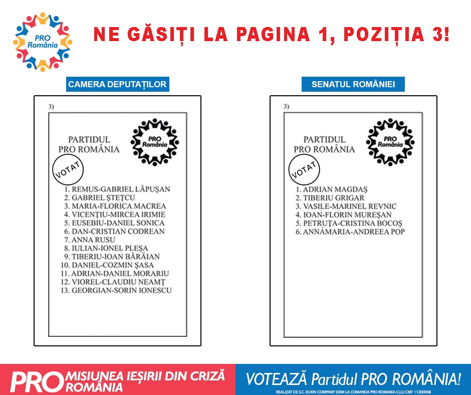 Publicat de SC DHC MEDIA NET SRL la comanda Partidul PRO România - Cluj, cod mandatar: 11200008