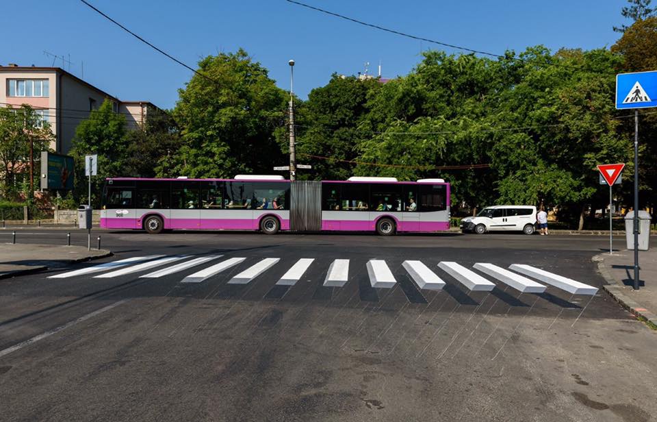 Primăria Cluj-Napoca anunță că derulează un nou proiect pilot pentru sporirea siguranței pietonilor din oraș: treceri de pietoni cu marcaj orizontal 3D.