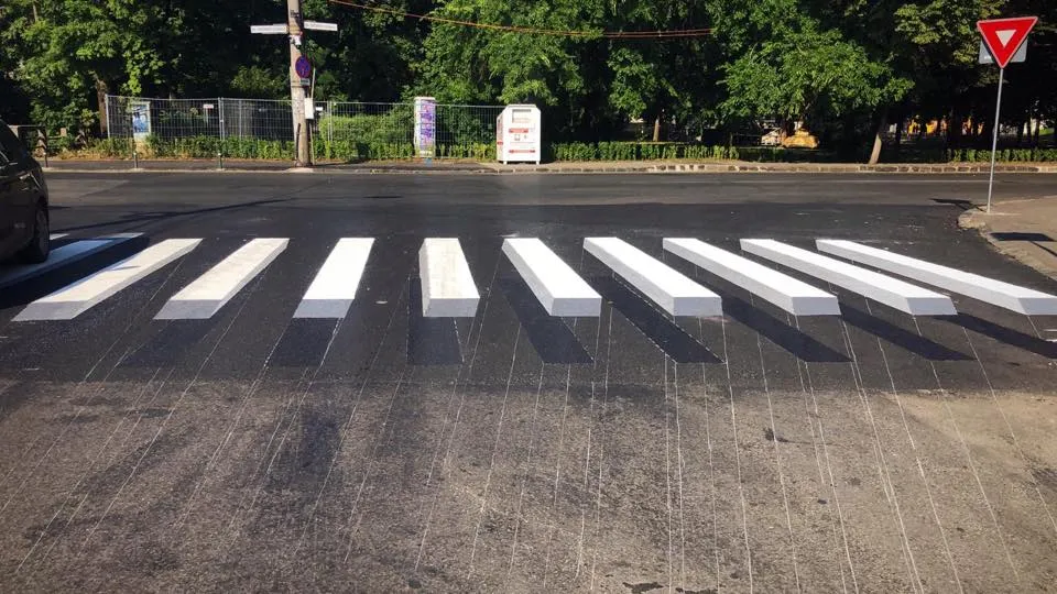 A apărut prima trecere de pietoni cu marcaj orizontal 3D din Cluj-Napoca, în zona Parcului Central FOTO
