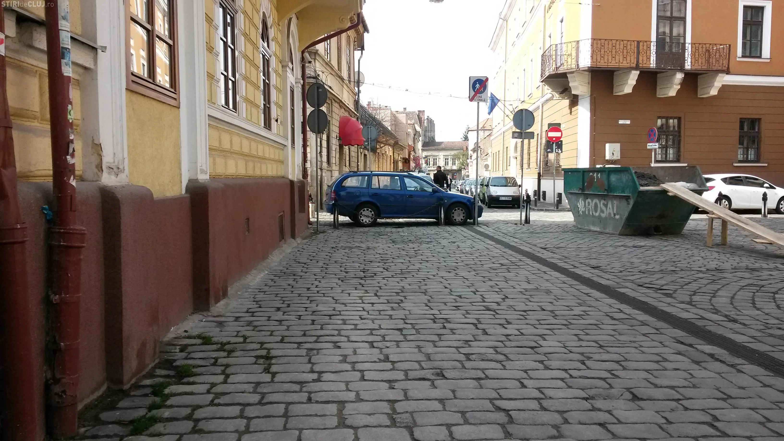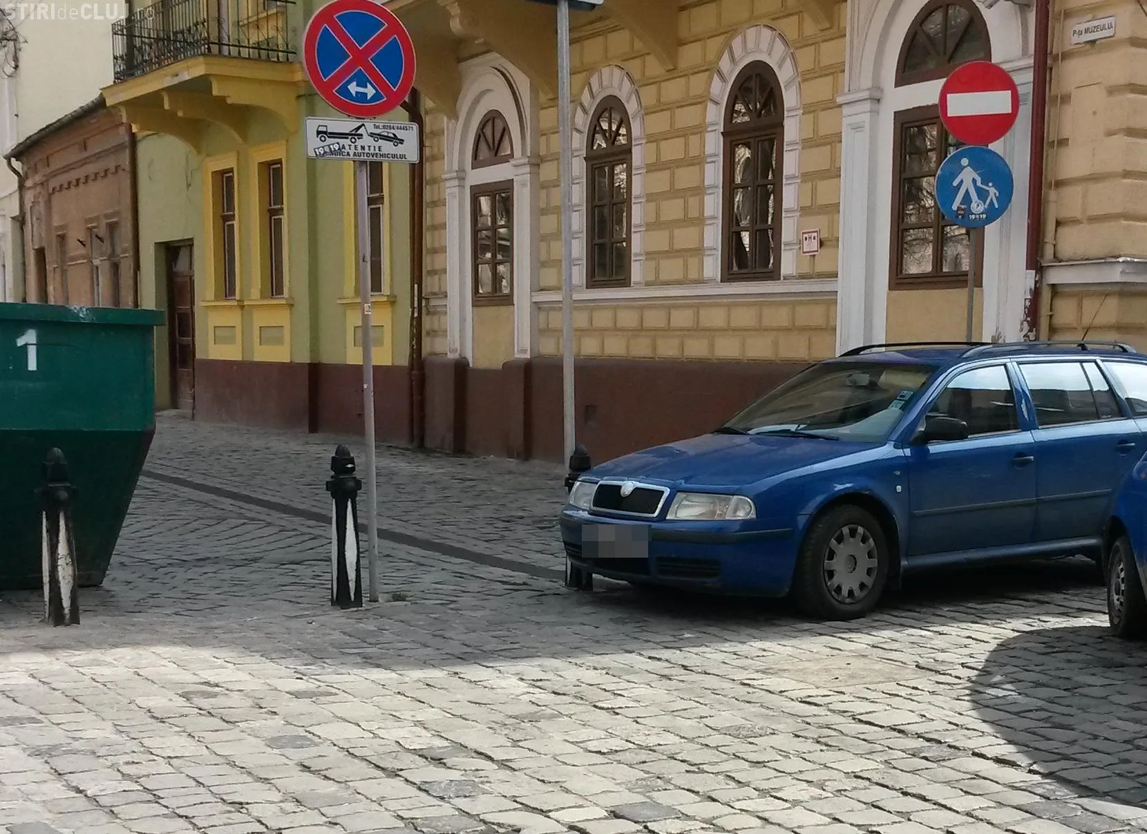 Un clujean a parcat neregulamentar în Piața Muzeului, blocând accesul riveranilor și s-a ales cu o cheie pe portieră.