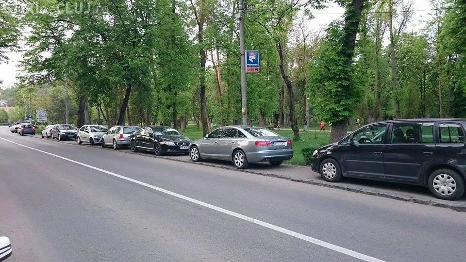 Foarte mulți clujeni, mai ales în weekend preferă să urce mașina pe trotuar, deși parkingurile sunt foarte aproape, iar apoi să se relaxeze în parc sau să meargă la un eveniment sportiv.