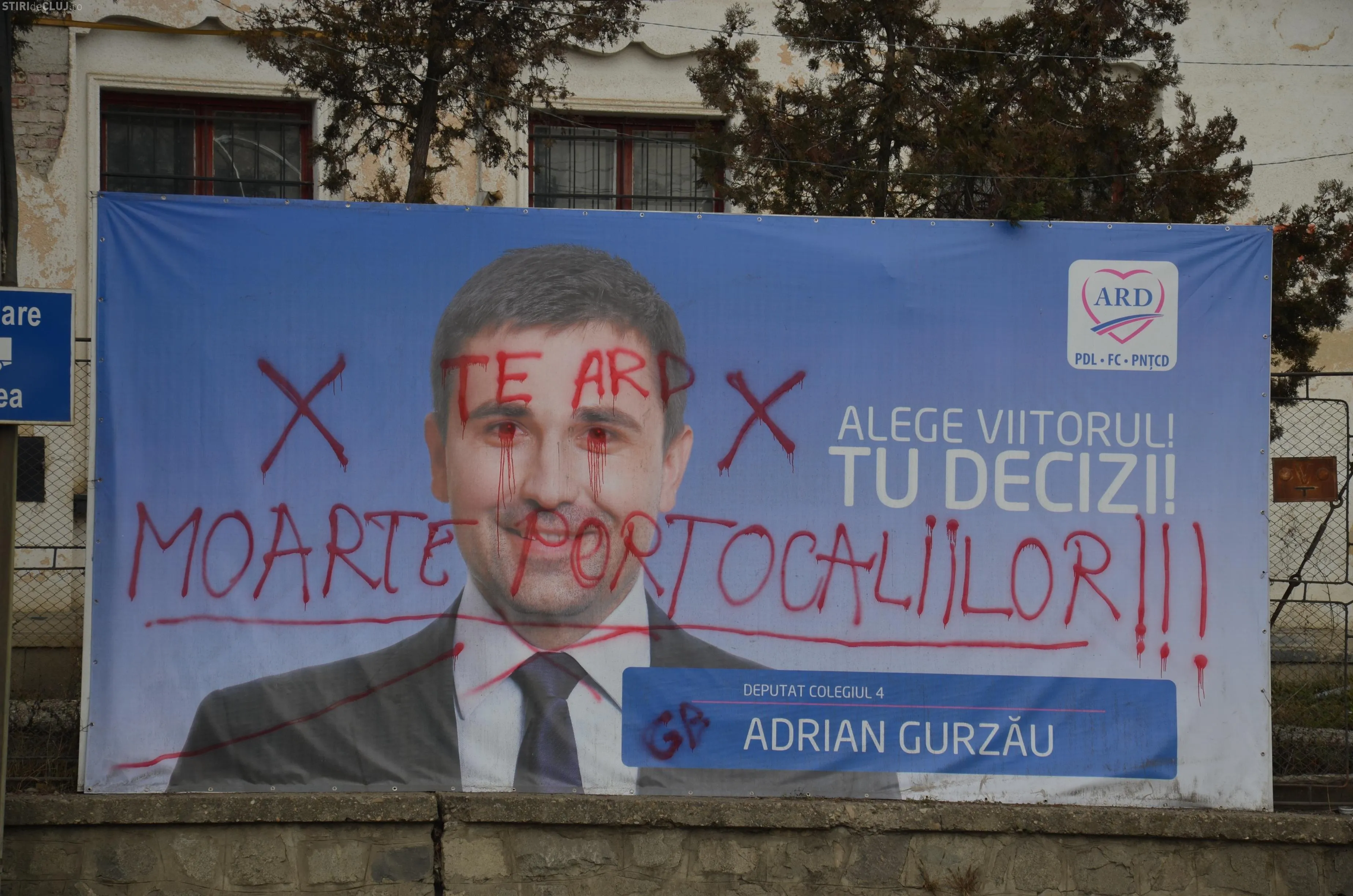 Afișele candidatului ARD, Adrian Gurzău, au fost vandalizate în noaptea de 6 spre 7 decembrie.