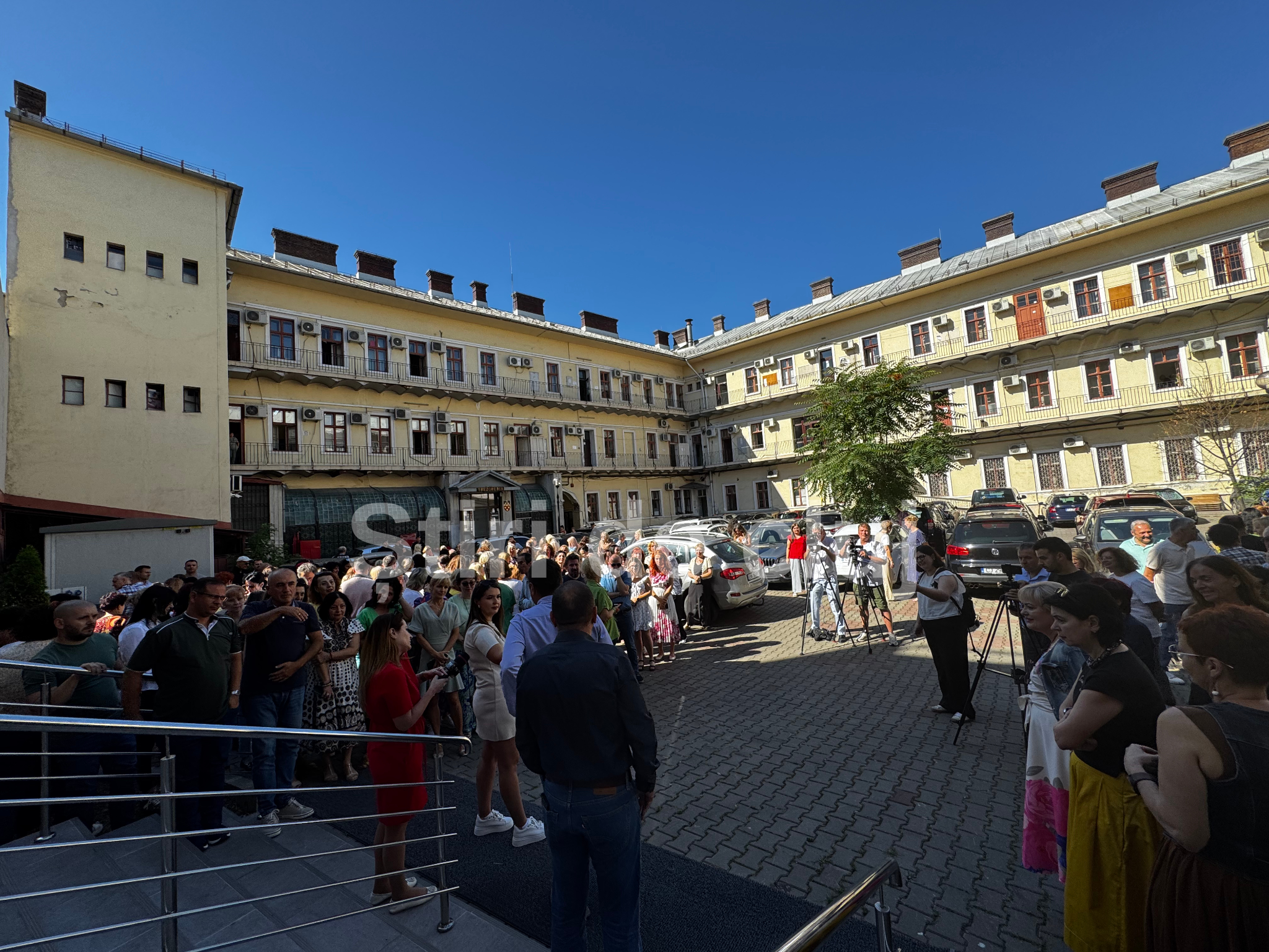 A doua zi de proteste la Finanțe Cluj! Funcționarii au ieșit din nou în curte: „Ni se taie sporuri, dar marile privilegii rămân!”