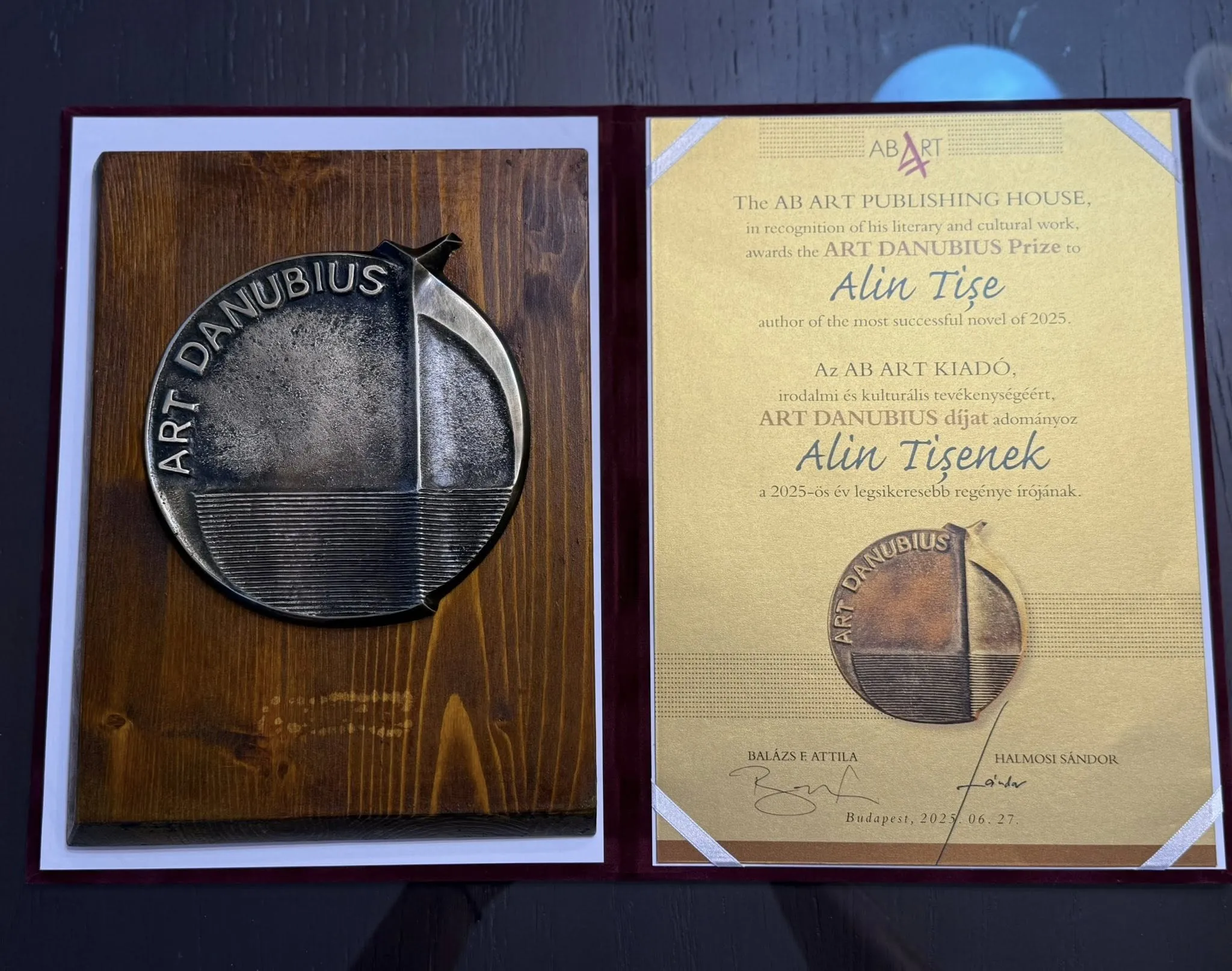 Ediția în limba maghiară a romanului «Fluturele Dor și Floarea de apă» a fost recent pe standurile prestigiosului târg de carte de la Budapesta, unde i-a fost conferit premiul «Art Danubius» pentru cel mai bun roman al anului 2025! O onoare deosebită și un sentiment pe măsură! Le mulțumesc tururor celor care m-au ajutat să visez! Vă mulțumesc vouă, tuturor celor care m-ati însoțit în acesta călătorie și m-ați făcut să mă regăsesc!”, a transmis Alin Tișe.