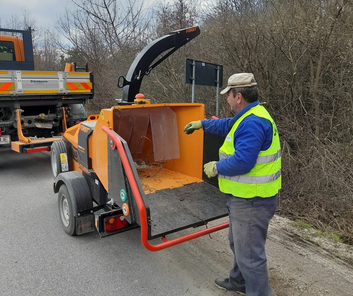 Lucrările de întreținere specifice constau în toaletarea arborilor din apropierea căii de rulare și din vecinătatea drumului, precum și tocarea materialului lemnos rezultat în urma acestor lucrări.