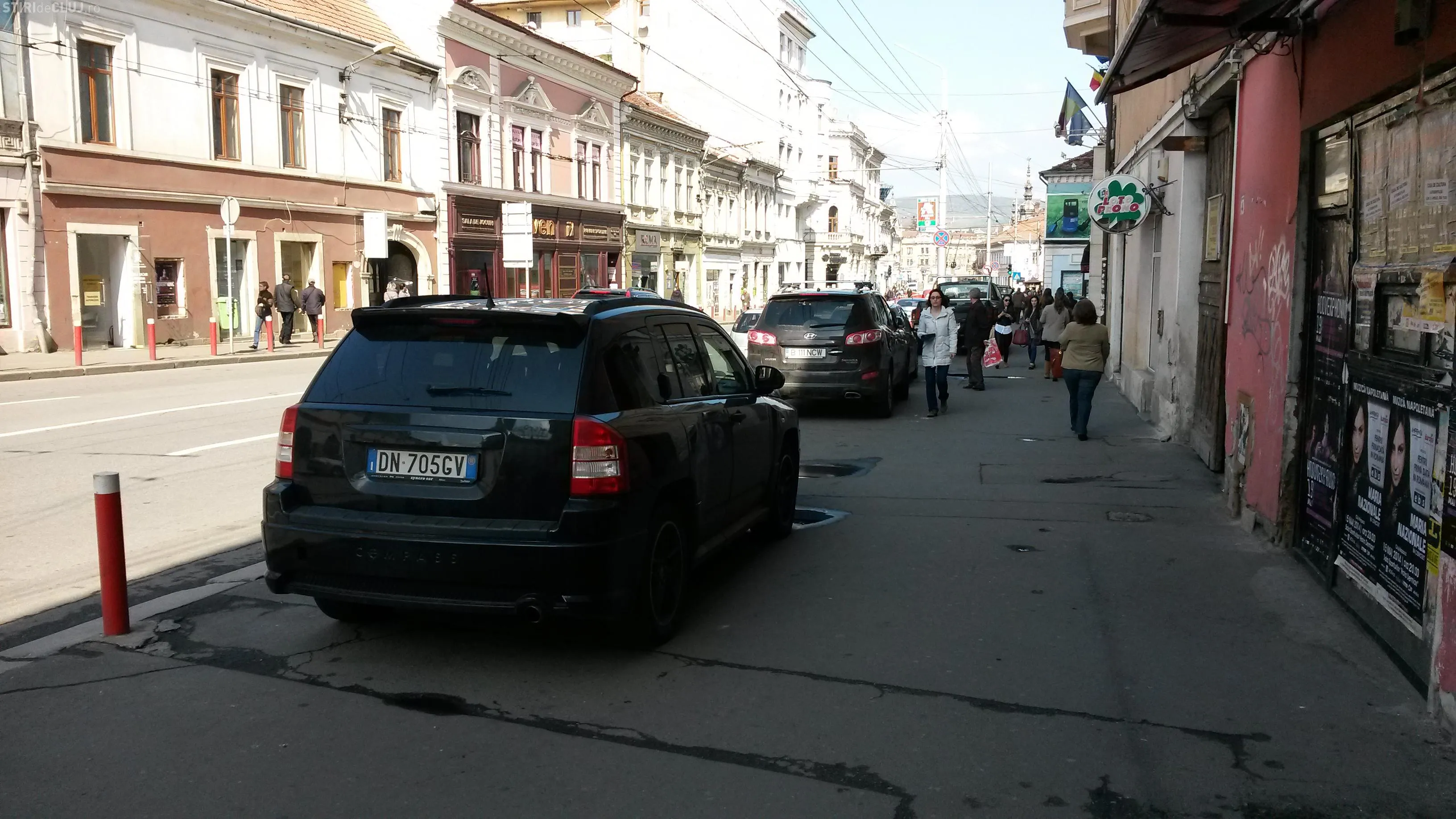 Jeep -urile și-au amenajat parcare pe strada Regele Ferdinand, din inima Clujului, dar Poliția Locală Cluj se pare că nu are acțiune tematică luni dimineața, în această zonă.