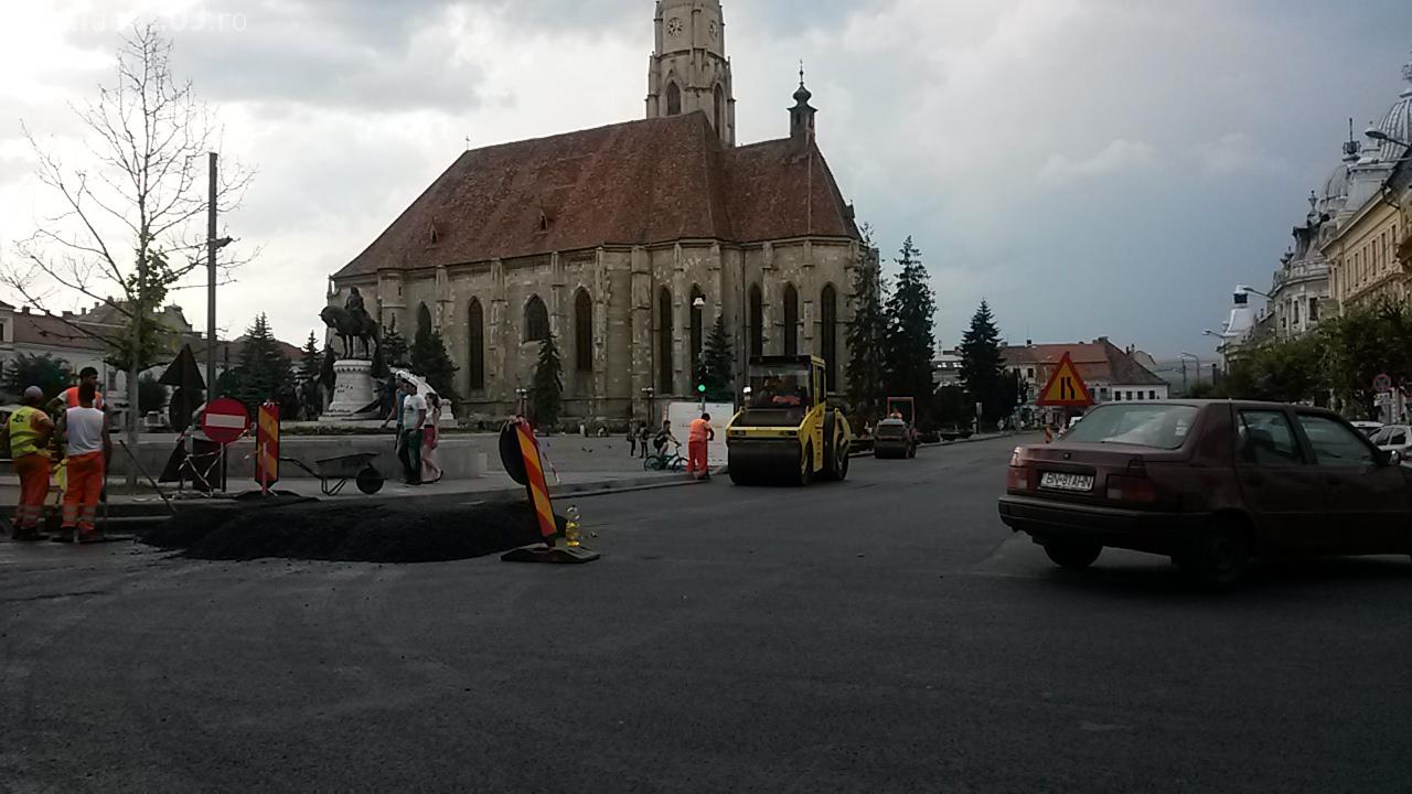 Primăria Cluj-Napoca anunță că proiectul de asfaltare în Piața Unirii și în zona centrală se va încheia parțial.