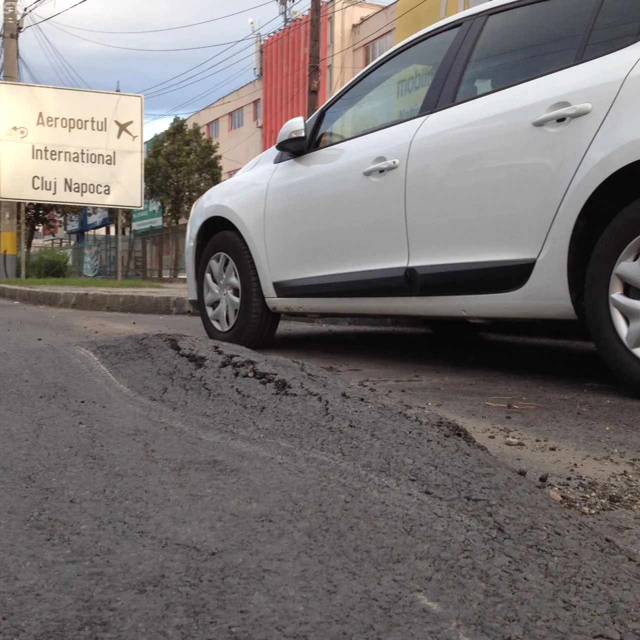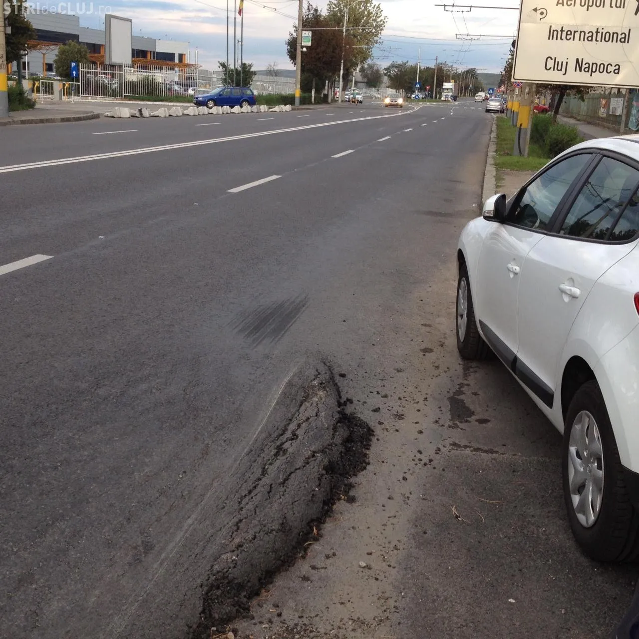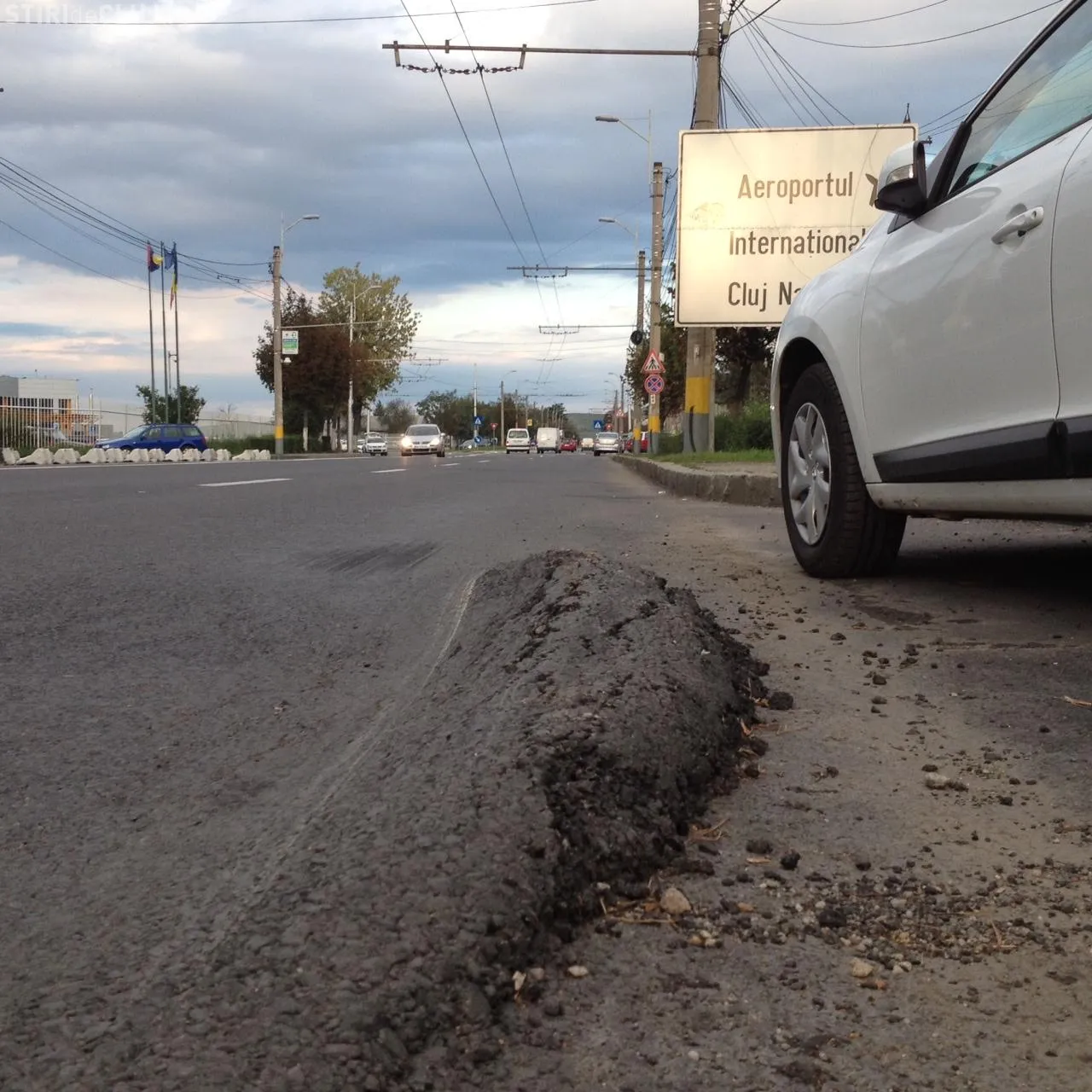 În apropierea Aeroportului Internaţional Cluj Napoca, asfaltul a cedat şi a apărut ceea ce specialiştii numesc ”făgaşe longitudinale”, mai uzual asfaltul a cedat şi a început să ia urma roţilor.