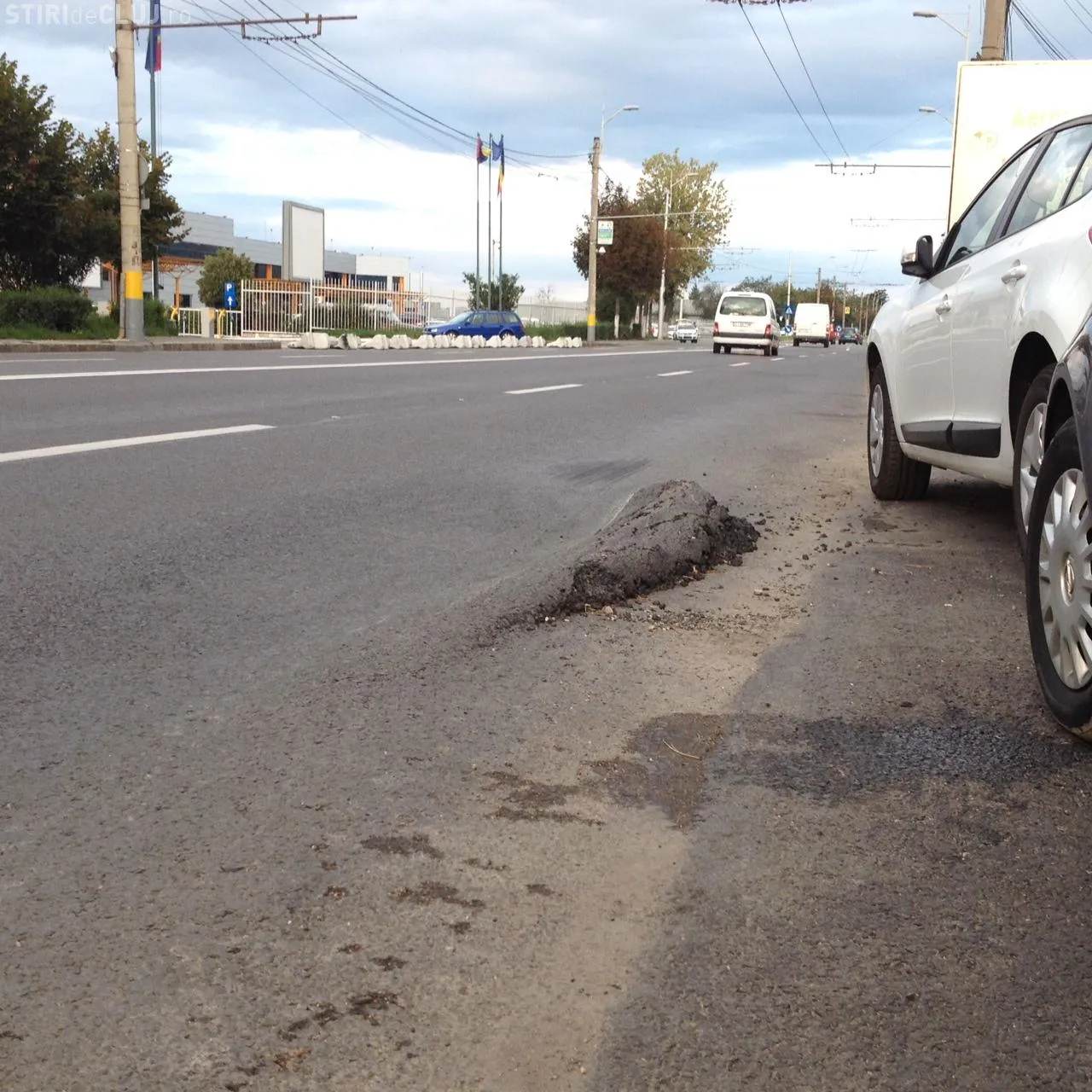 Asfaltul proaspăt turnat pe strada Traian Vuia a cedat. Începe să se RIDICE pe marginea drumului - FOTO