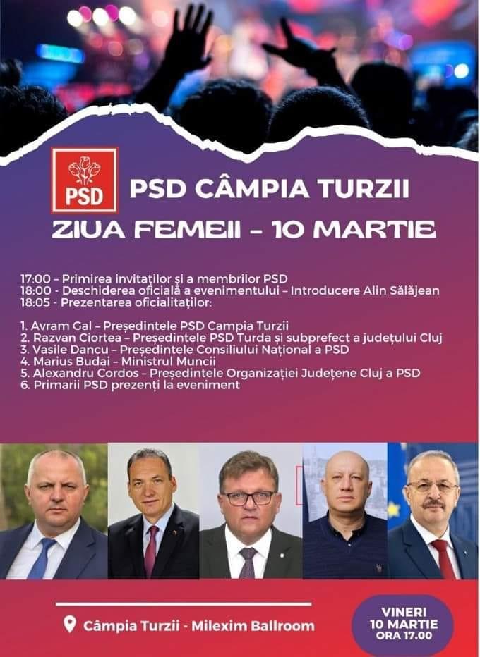 PSD Câmpia Turzii și Turda organizează un eveniment dedicat femeilor, dar vorbitori sunt numai bărbații.