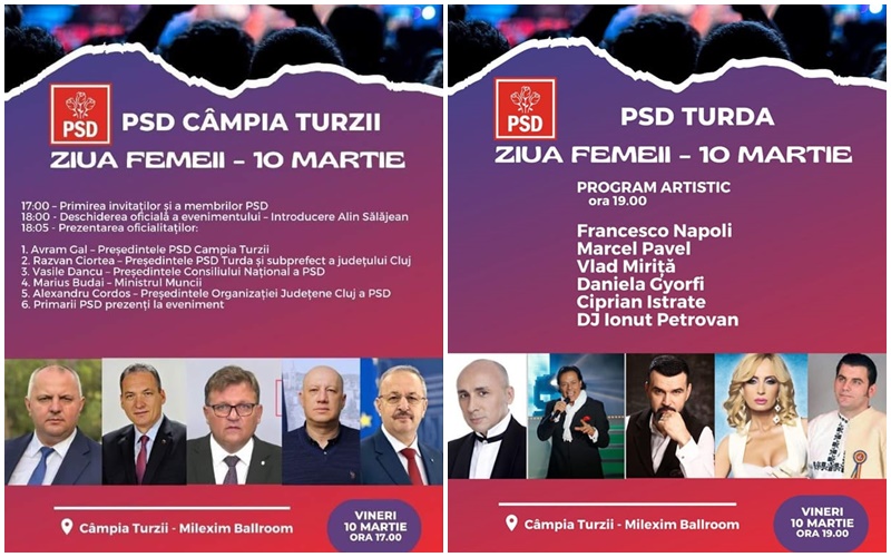 ”Atât s-a putut!” - PSD Câmpia Turzii face un show dedicat femeii, dar invită bărbații și pe ”Marius Budăi, hărțuitorul de colege”