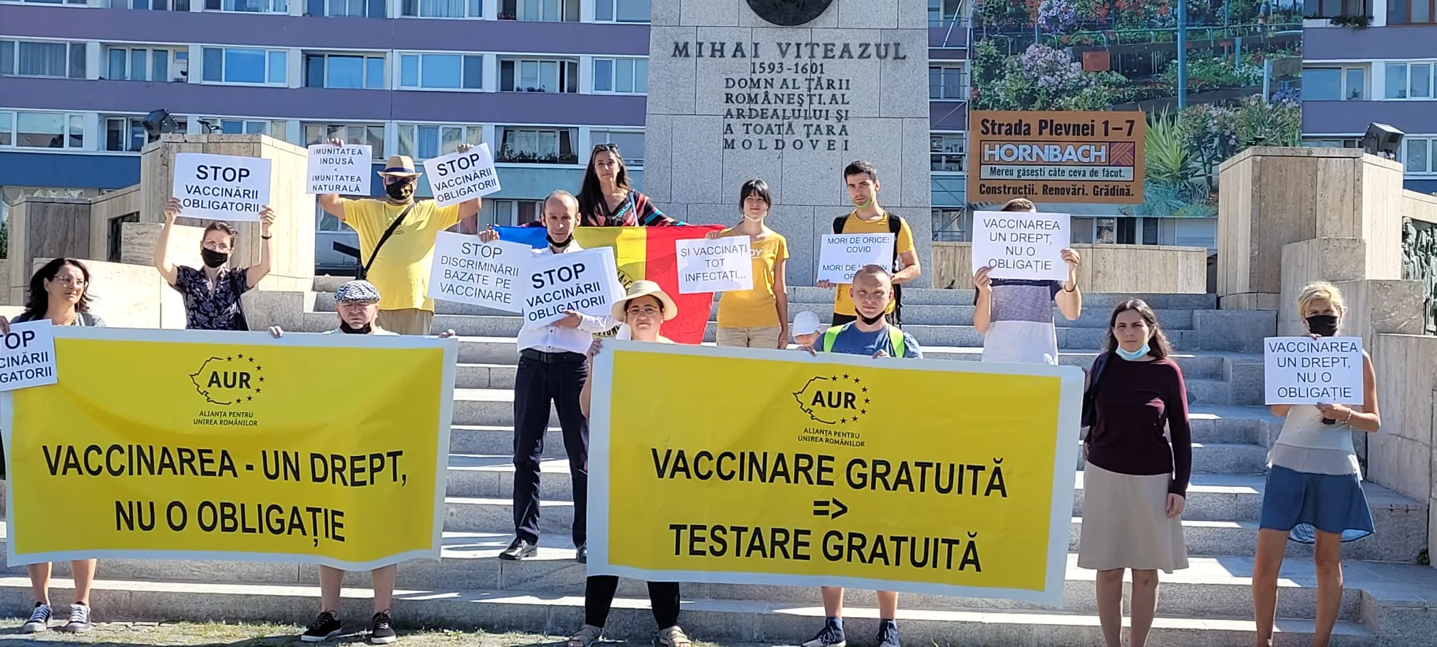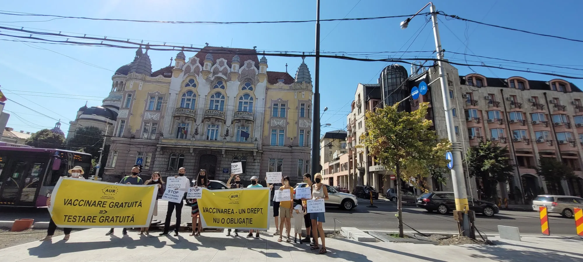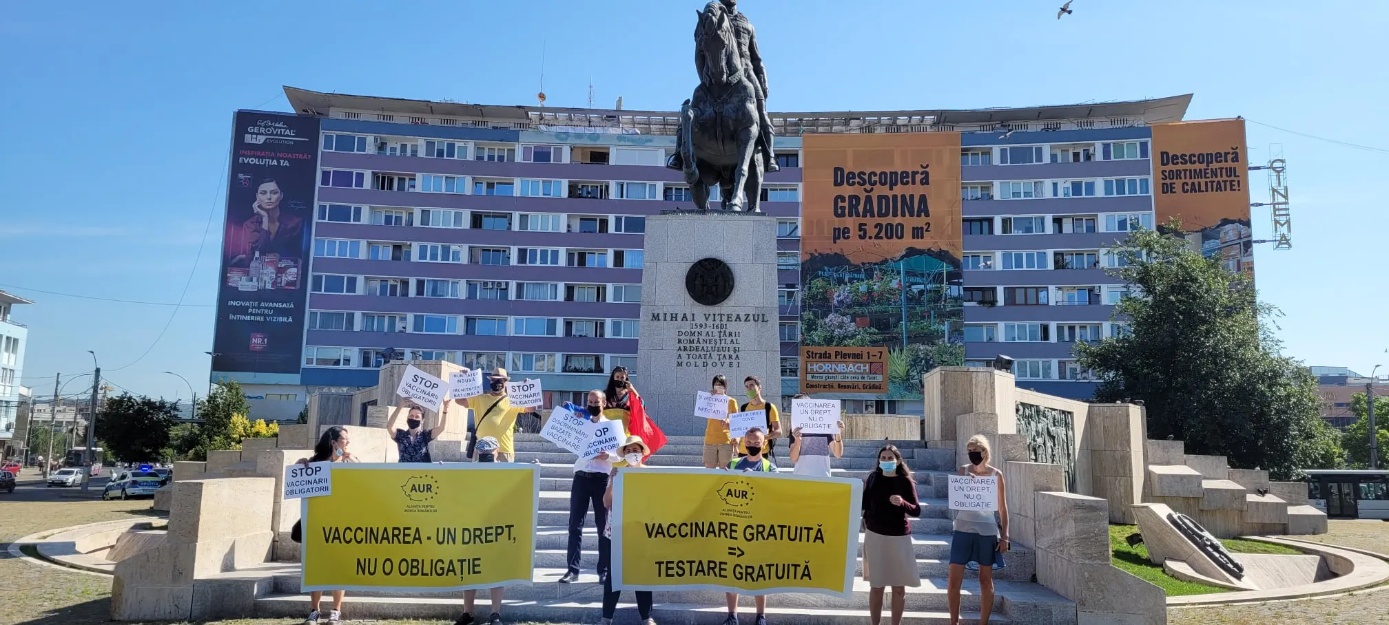 AUR a făcut un nou protest la Cluj și politizează puternic discuțiile care trebuie să se poarte pe marginea impunerii vaccinării sau a testării pentru diverse categorii sociale.
