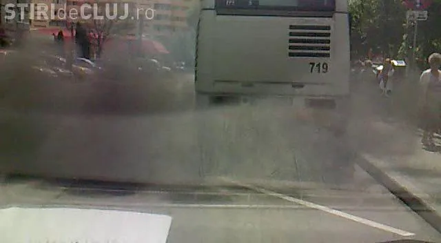 "Am surprins autobuzul 30 in statia finala din Grigorescu. A oprit si in momentul in care a plecat de pe loc a lasat in spatele lui un nor de fum. Nu am mai vazut nici macar la 2 metri in fata mea si a trebuit sa incetinesc masina. Autobuzul asta poate provoca, indirect, accidente, intr-o intersectie aglomerata", ne-a scris Bodo Zoltan, cititor Stiri de Cluj.