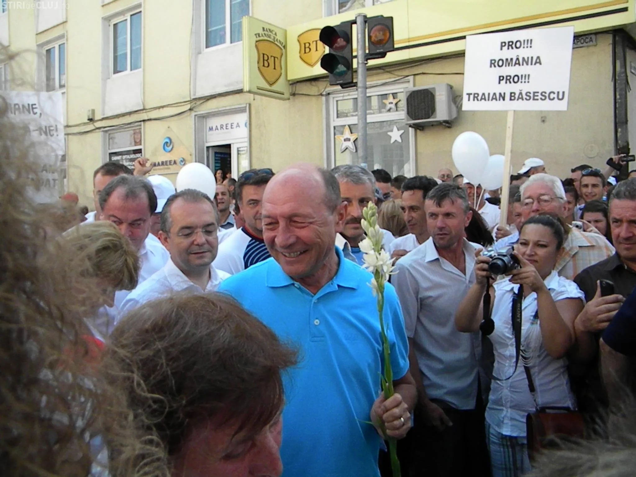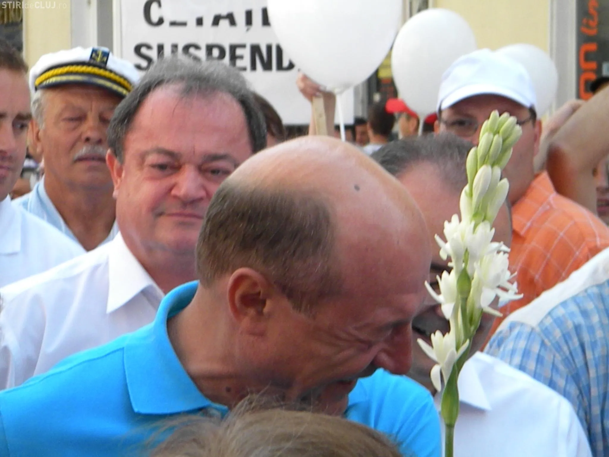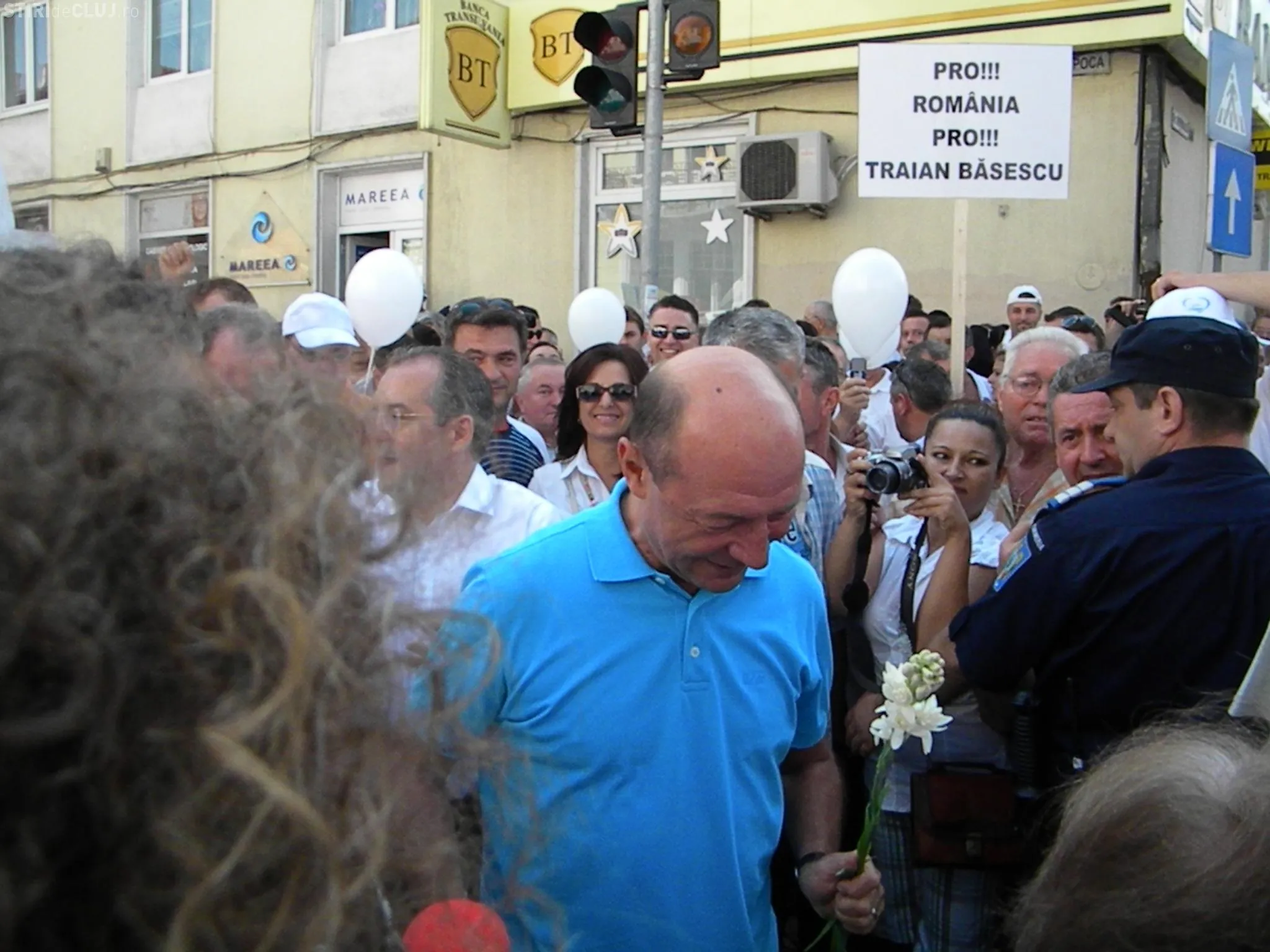 Traian Băsescu a venit sâmbătă la Cluj-Napoca unde i-a îndemnat pe clujeni, dar şi pe cei aduşi din alte oraşe ca pe 29 iulie să voteze cu democraţia.