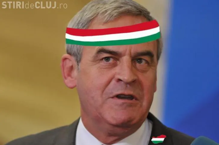 Basescu poartă bentiță cu drapelul maghiar pe cap. Trucaj USL - FOTO