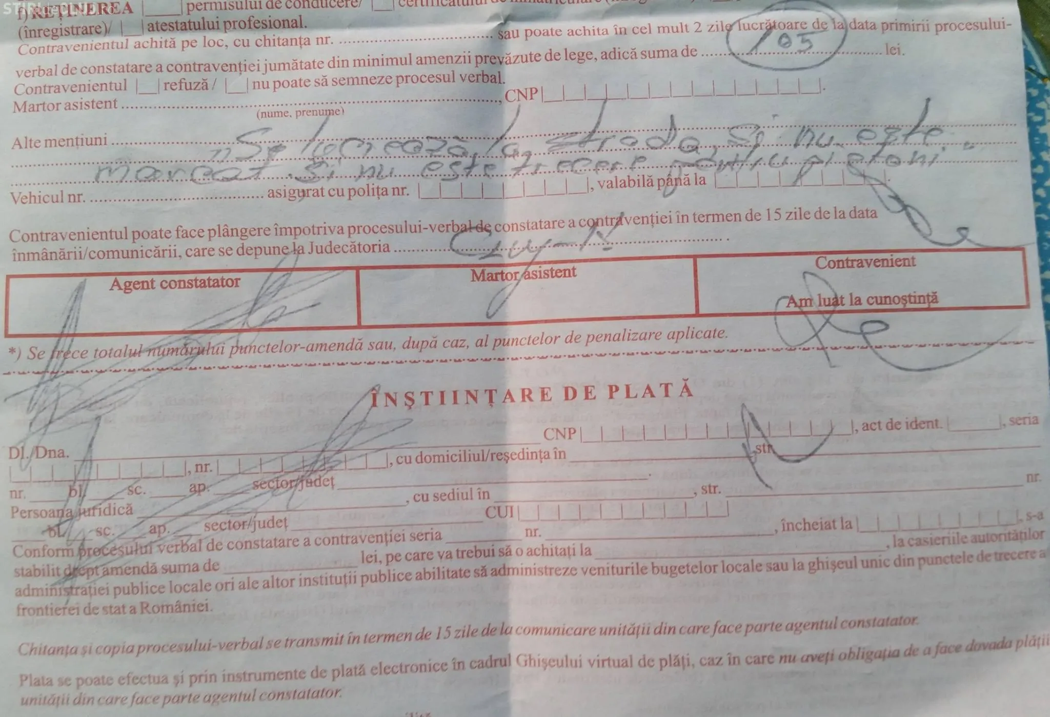 În ceea ce privește procesul-verbal prezentat, facem mențiunea că persoana nemulțumită de măsura luată are dreptul, în termen de 15 zile de la înmânarea sau comunicarea procesului-verbal de constatare și aplicare a sancțiunii, să facă plângere conform Ordonanței nr. 2/2001 privind regimul juridic al contravențiilor. Plângerea se adresează Judecătoriei, urmând ca în acest cadru să fie analizată legalitatea măsurii luate.