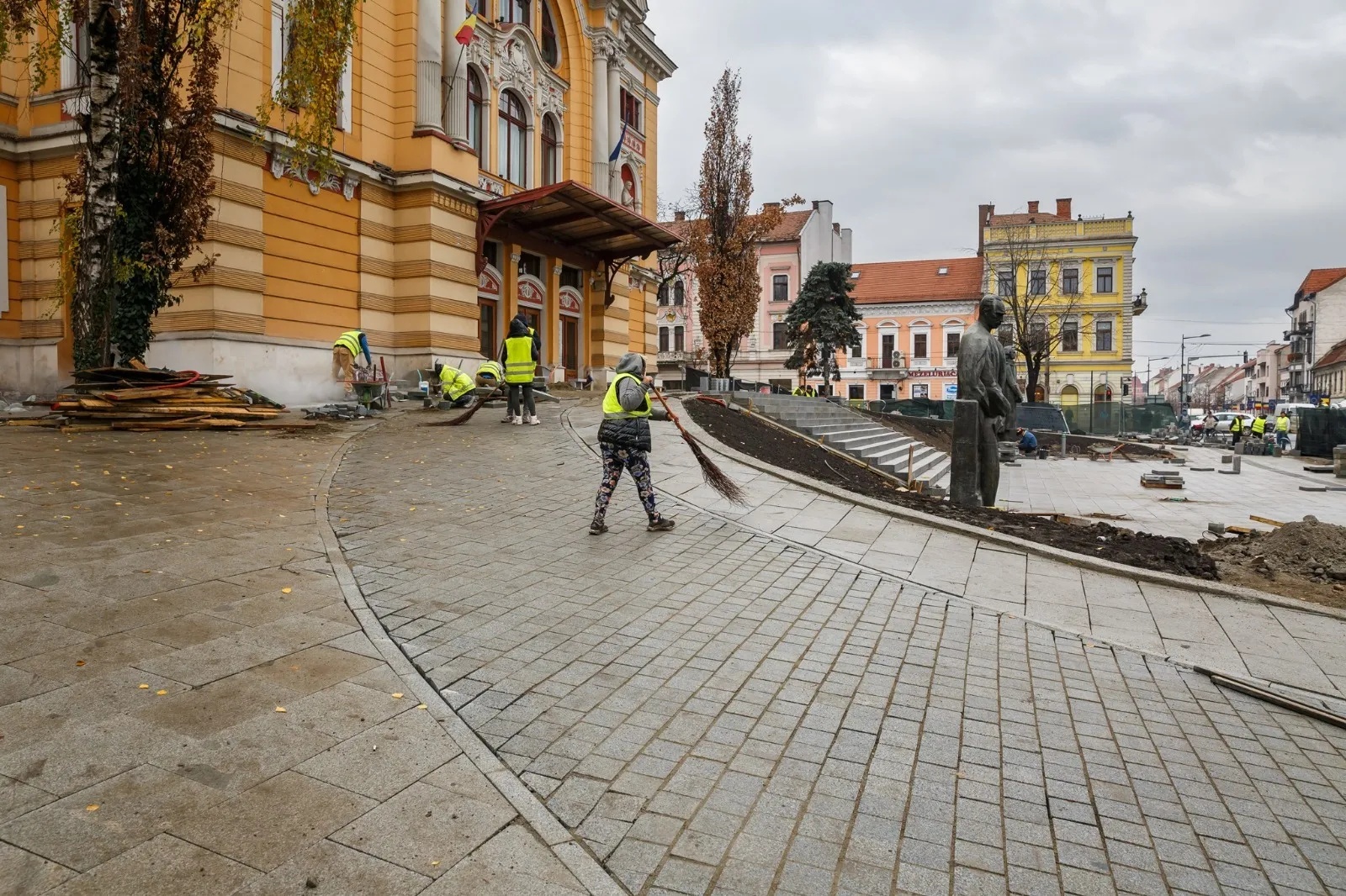 ”Lucrările din fața Teatrului Național vor fi finalizate până la 1 Decembrie. Mai este de pus gazonul în zonele aferente”, a spus Emil Boc.