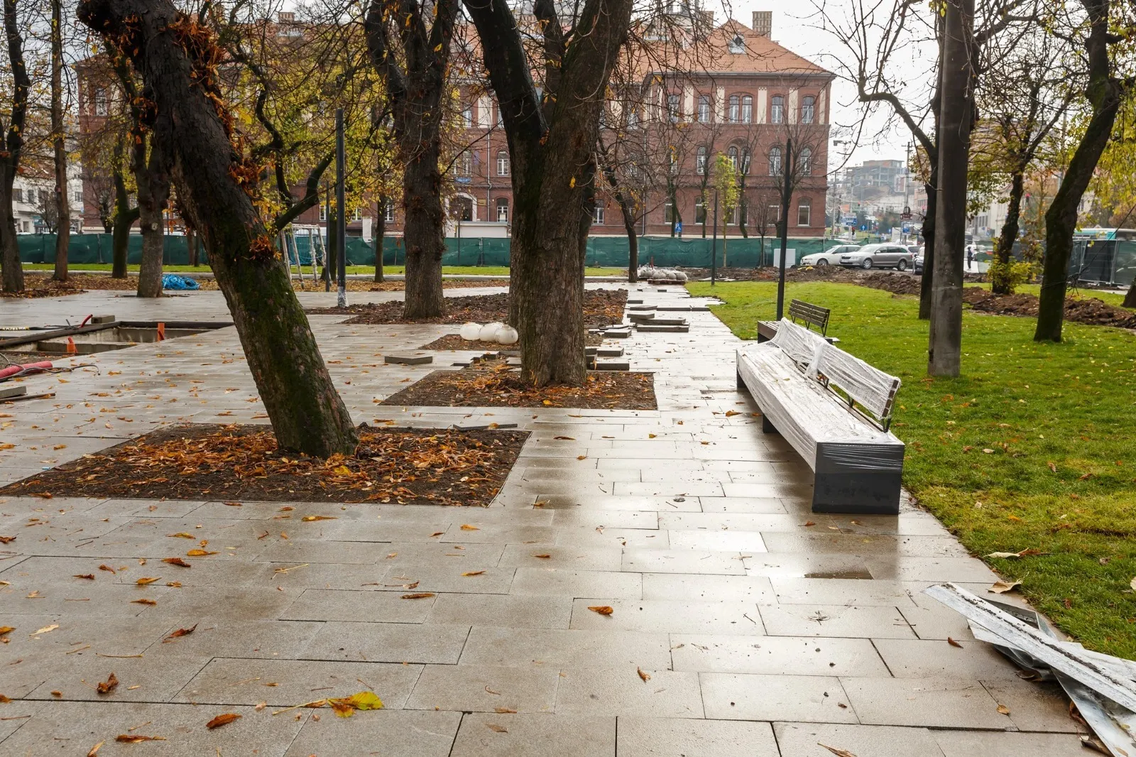 În spatele Teatrului, în parc locul este complet schimbat. Au dispărut aleile, gardul viu de pe margine și a apărut o piață din granit, unde să se facă eveniment. Norocul a fost că nu s-au tăiat vechii copaci.