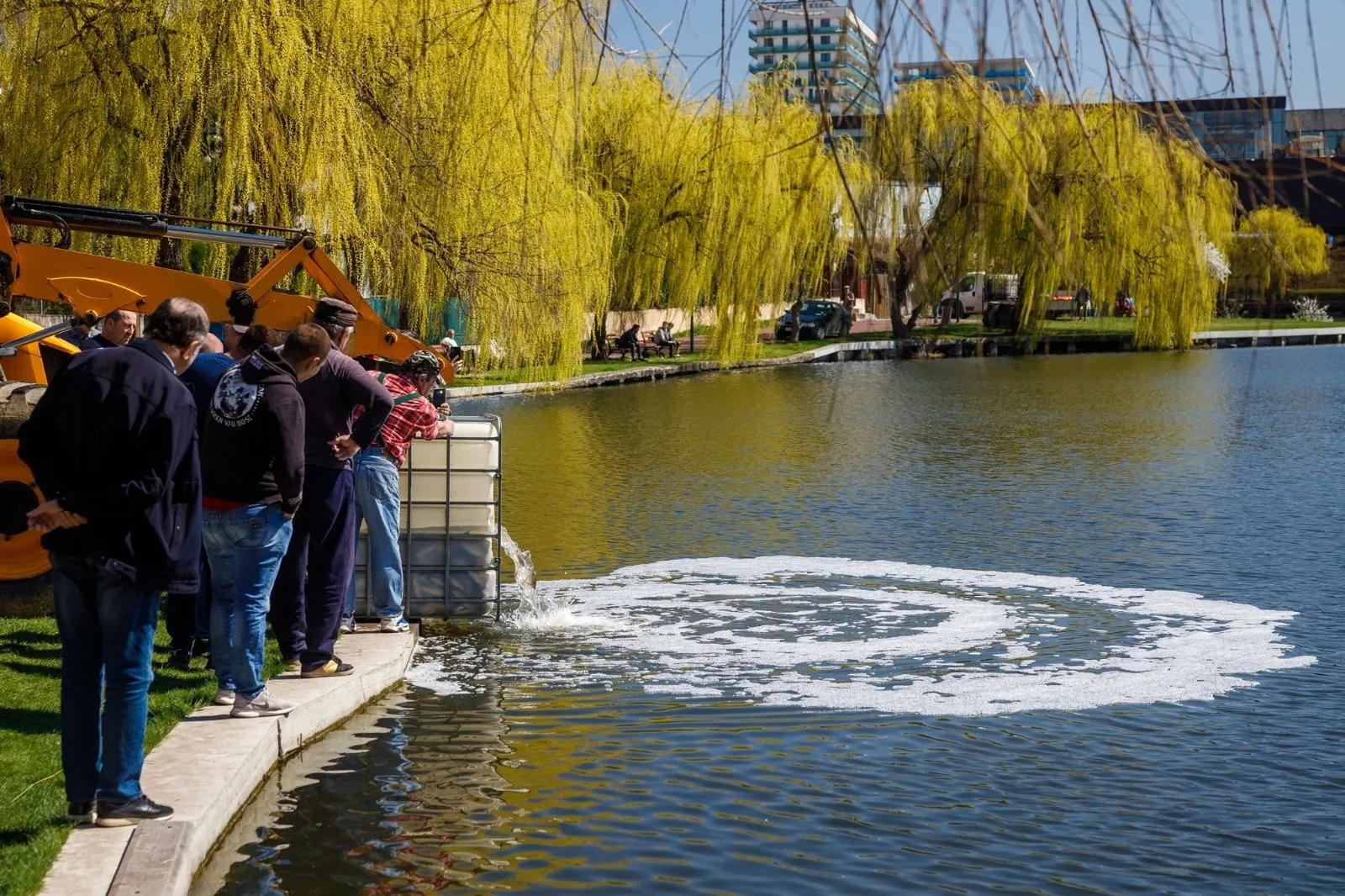 Două lacuri din cartierul Gheorgheni au fost populate miercuri, 13 aprilie, cu pești, iar primarul Emil Boc a fost prezent.