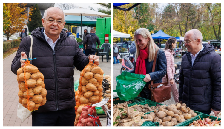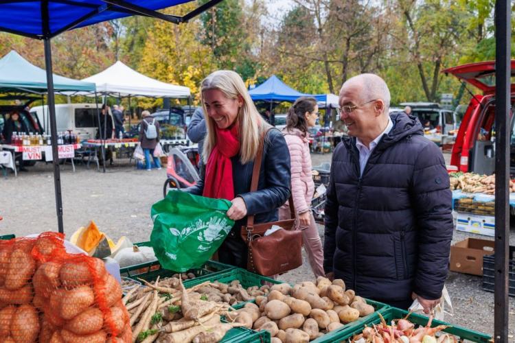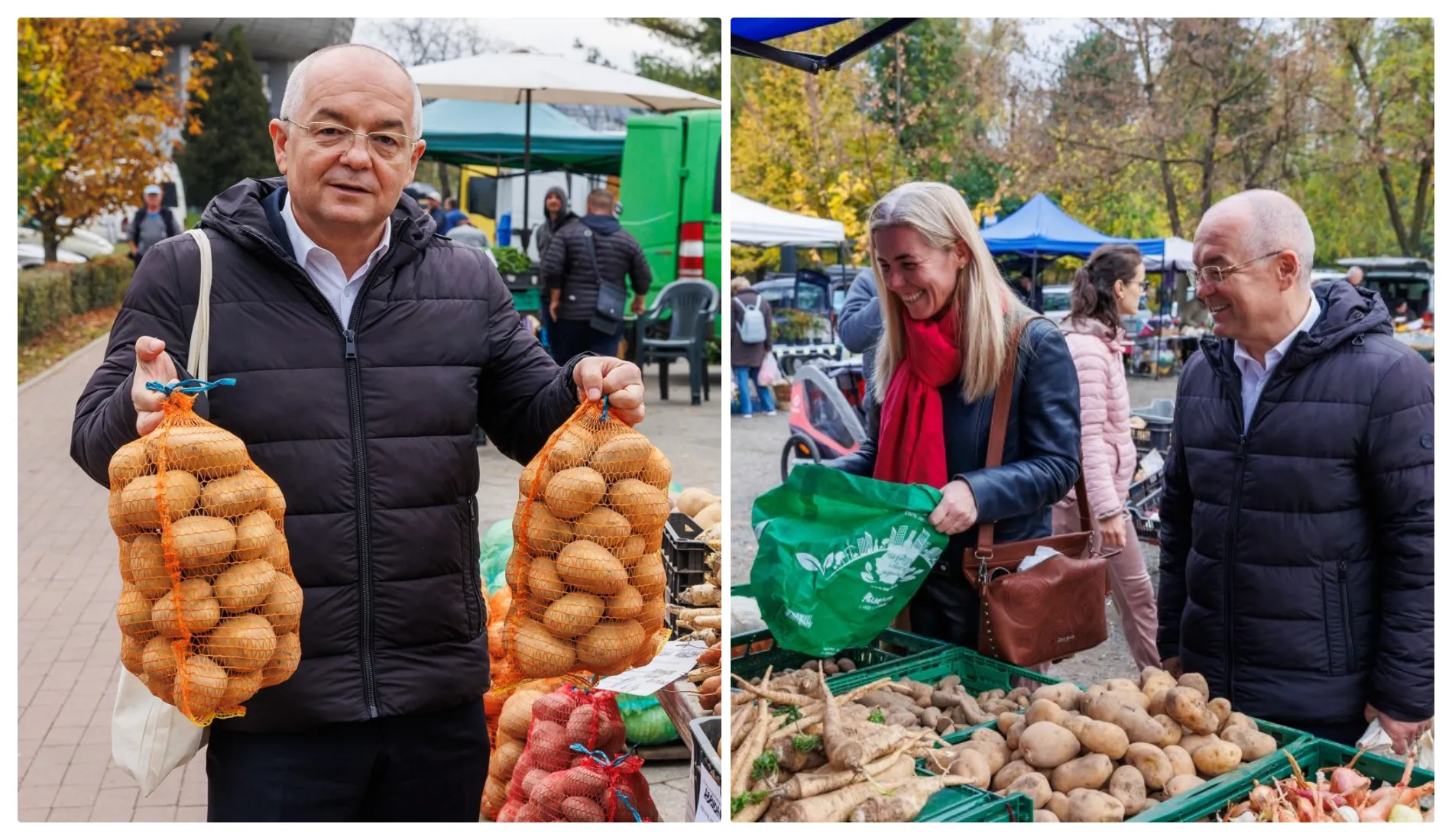Primarul Emil Boc este într-o campanie electorală permanentă și s-a dus din nou în piața volantă alături de fotograful Primăriei Cluj-Napoca, pentru a-l poza cum cumpără legume.