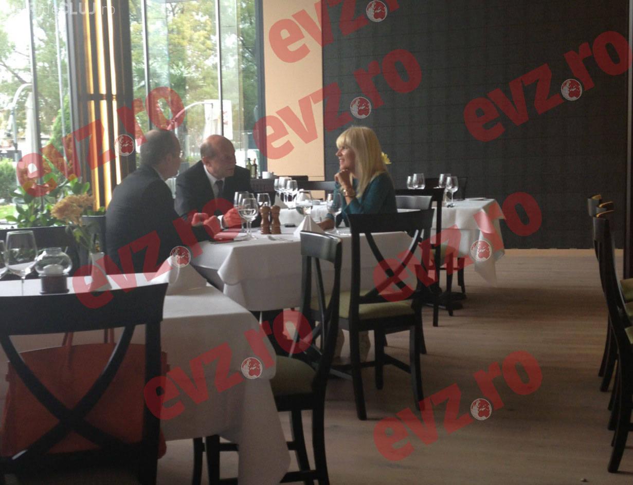 Preşedintele Traian Băsescu, fostul premier Emil Boc şi deputatul PDL Elena Udrea au luat masa la restaurantul Golden Blitz din Bucureşti.