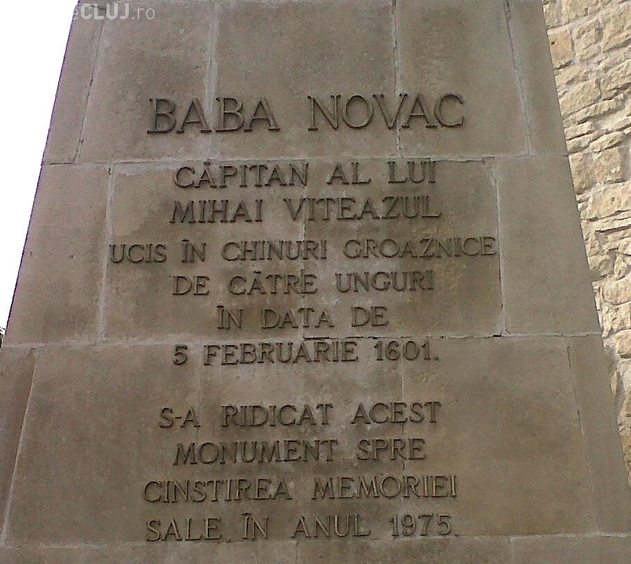În septembrie 1998, când Gheorghe Funar era primarul Clujului, pe soclul statuii lui Baba Novac a fost montată o plăcuță cu textul: ”Baba Novac, căpitan al lui Mihai Viteazul, ucis în chinuri groaznice de către unguri în data de 5 februarie 1601”, scrie cluj24.ro.