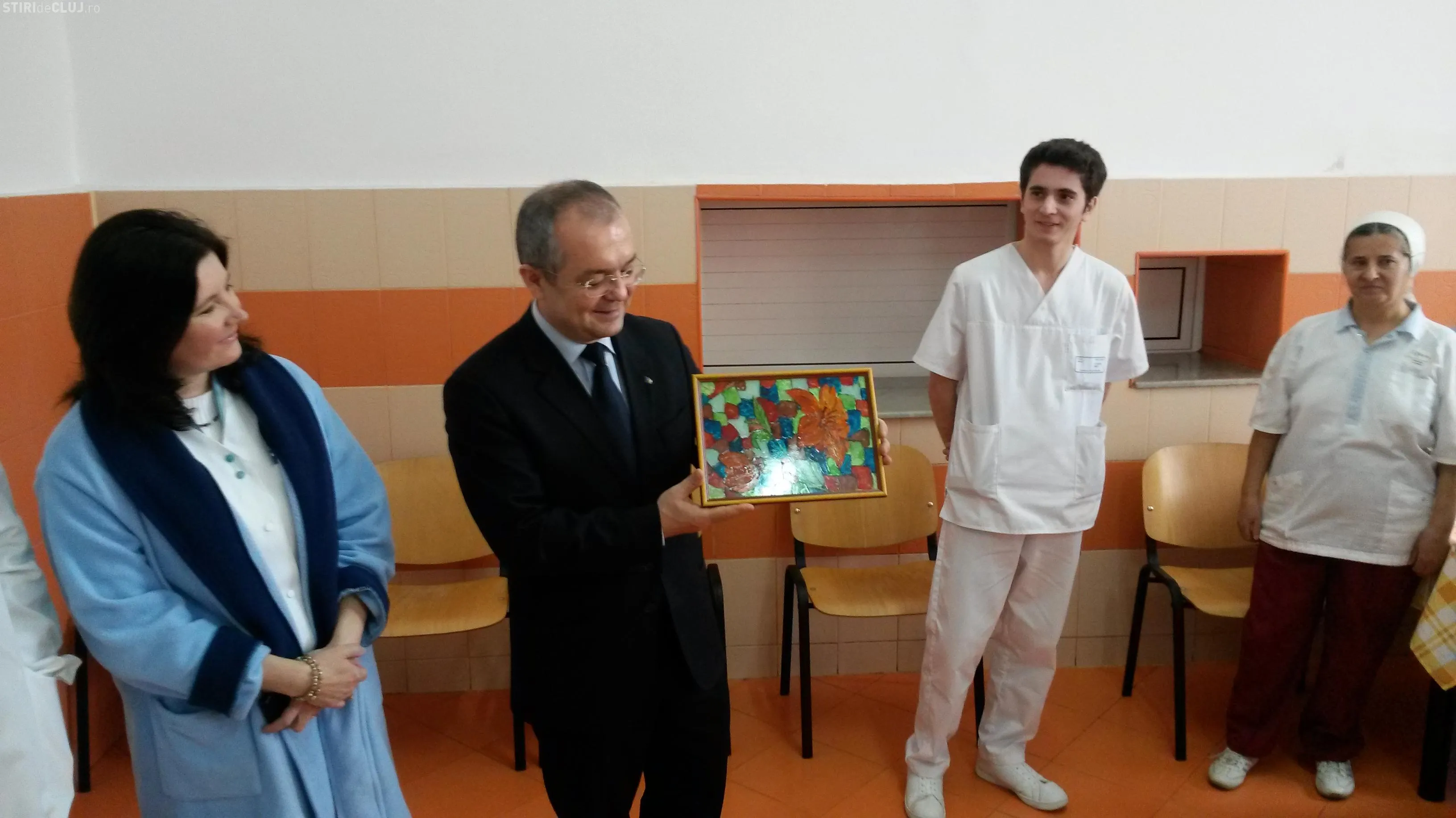 Unul dintre bărbații din Centrul de îngrijire a realizat o pictură pe sticlă și aceasta i-a fost făcută cadou primarului Emil Boc. De asemenea, nu a lipsit nici fotografia de Facebook, realizată de alături de primar.