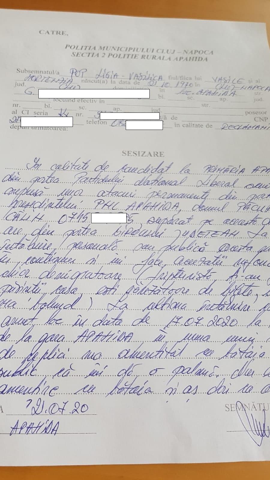 ”În 17 iulie, a fost o întâlnire care trebuia să fie între colegi s-a transformat într-un teatru de insulte. M-a amenințat că mă bate. Mă insultă de un an și jumătate de când știe că aș putea ajunge candidata PNL la Primăria Apahida. Din 15 august 2019, de când am fost sondată pentru a se vedea notorietatea mea, a început amenințarea și hărțuirea și pe grupurile interne ale partidului și în față. Totul este pe un fond de hărțuire continuată”, a spus Ligia Pop.