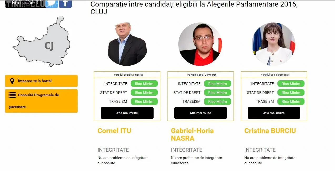 Echipa de candidați eligibili ai PSD Cluj a trecut testul de integritate integral: Fiecare candidat al PSD Cluj, considerat eligibil, (Horia Nasra, Cornel Itu, Cristina Burciu la Camera Deputaților, Vasile Ilea și Simina Șipoș la Senat) a fost evaluat la un risc minim pe baza informațiilor privind integritatea (e.g. problemele penale, incompatibilități, conflicte de interese), respectul față de statul de drept (e.g. inițiative legislative de amputare a puterii judecătorești sau de dezincriminare a unor fapte penale în interes partinic, voturi împotriva cererilor parchetelor de ridicare a imunității parlamentarilor) și traseismul politic.