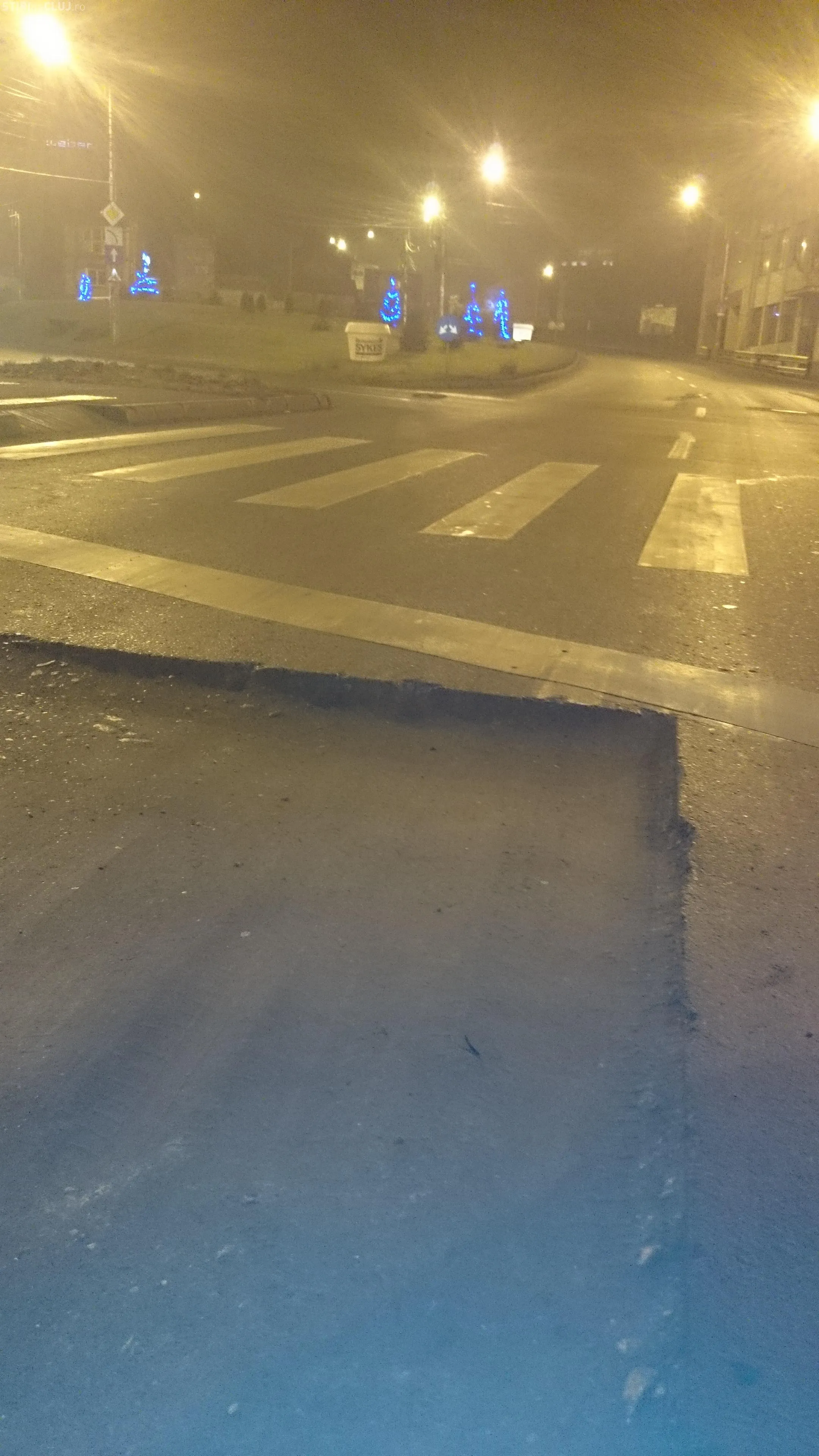 ”7 ianuarie, ora 1 dimineața. Intersecția Avram Iancu și Calea Turzii. Nici cel mai mic semn de avertizare.... Teribil... jeanta ruptă, direcție dusă. Am oprit să pun rezerva în benzinaria partener de mai sus. Platești taxe și impozite să găsești capcane în centrul orasului...”, ne-a relatat proprietarul mașinii.