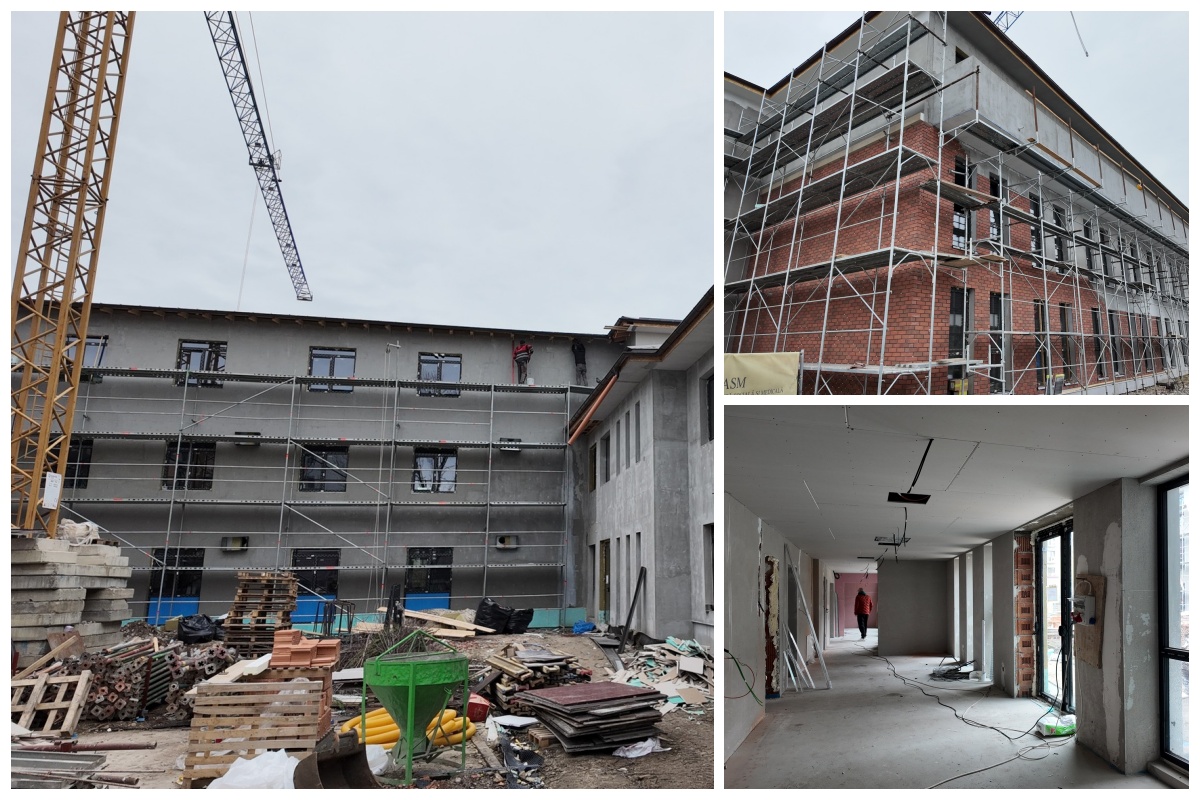 Învelitoarea clădirii este de asemenea complet finalizată. În interior, instalațiile sanitare, electrice și termice de la parter, etajul 1 și etajul 2 sunt realizate în proporție de 90%, iar lucrările de finisaje interioare au început în această săptămână. La nivelul subsolului, lucrările sunt finalizate în proporție de aproximativ 70%, iar gardul perimetral este realizat în proporție de 90%.