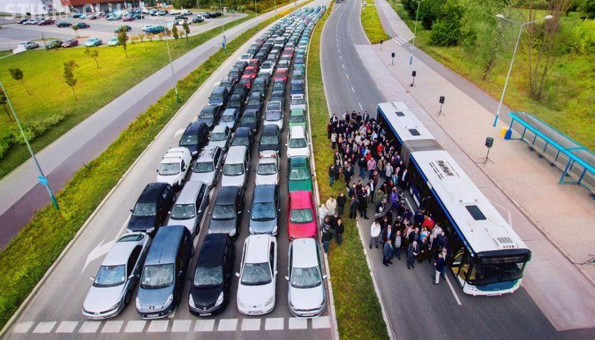 Câte mașini poate ”înghiți” un autobuz Solaris. De asta soluția este transportul în comun!