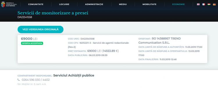 Interesant este că firma Trend Communication a primit în 6 martie 2019, adică după primirea lui Rareș Bogdan în marea familie liberală un contract de la Primăria Cluj-Napoca, municipalitate conducă de PNL -istul Emil Boc. Relația dintre firmă și Primăria Cluj-Napoca este una veche, datând încă de pe vremea primarului Sorin Apostu.