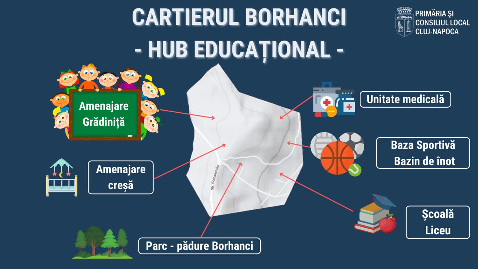 Borhanciul va avea hub educațional cu creșă, grădiniță, școală, unitate medicală de excelență, bază sportivă și pădure parc.