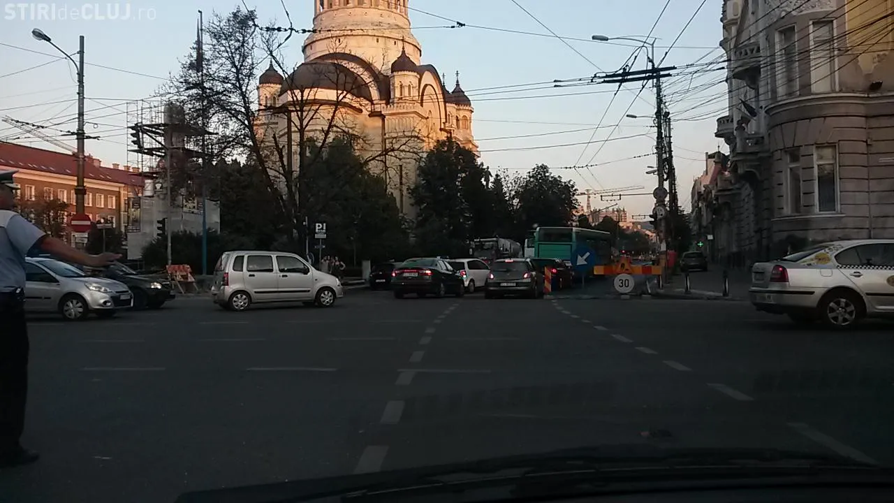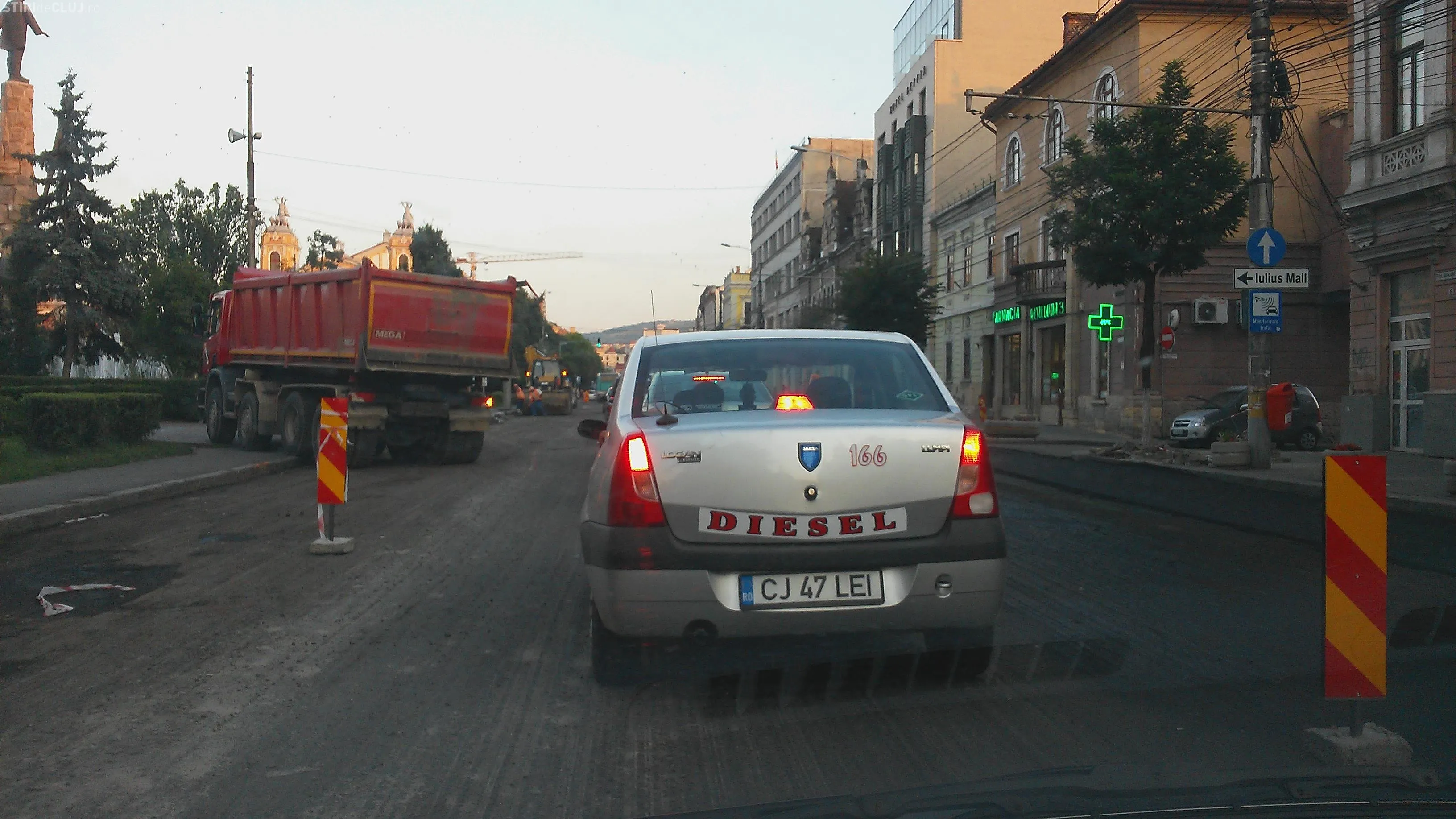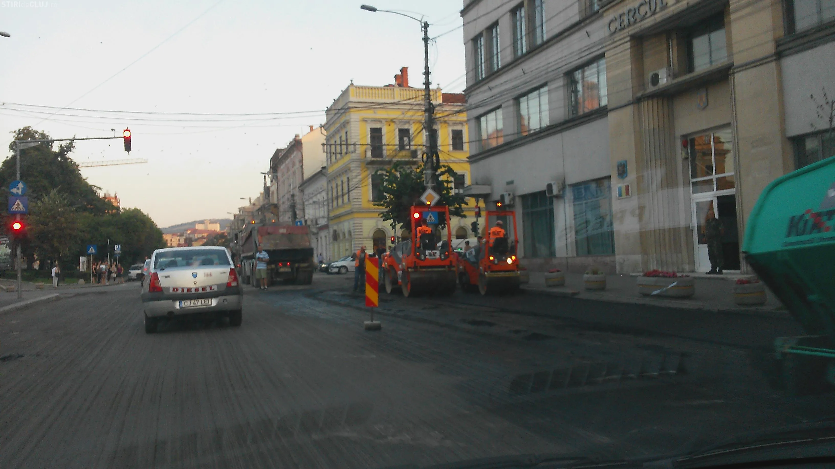 Centrul Clujului a fost paralizat, vineri seara, de lucrările de asfaltare din Piața Avram Iancu.