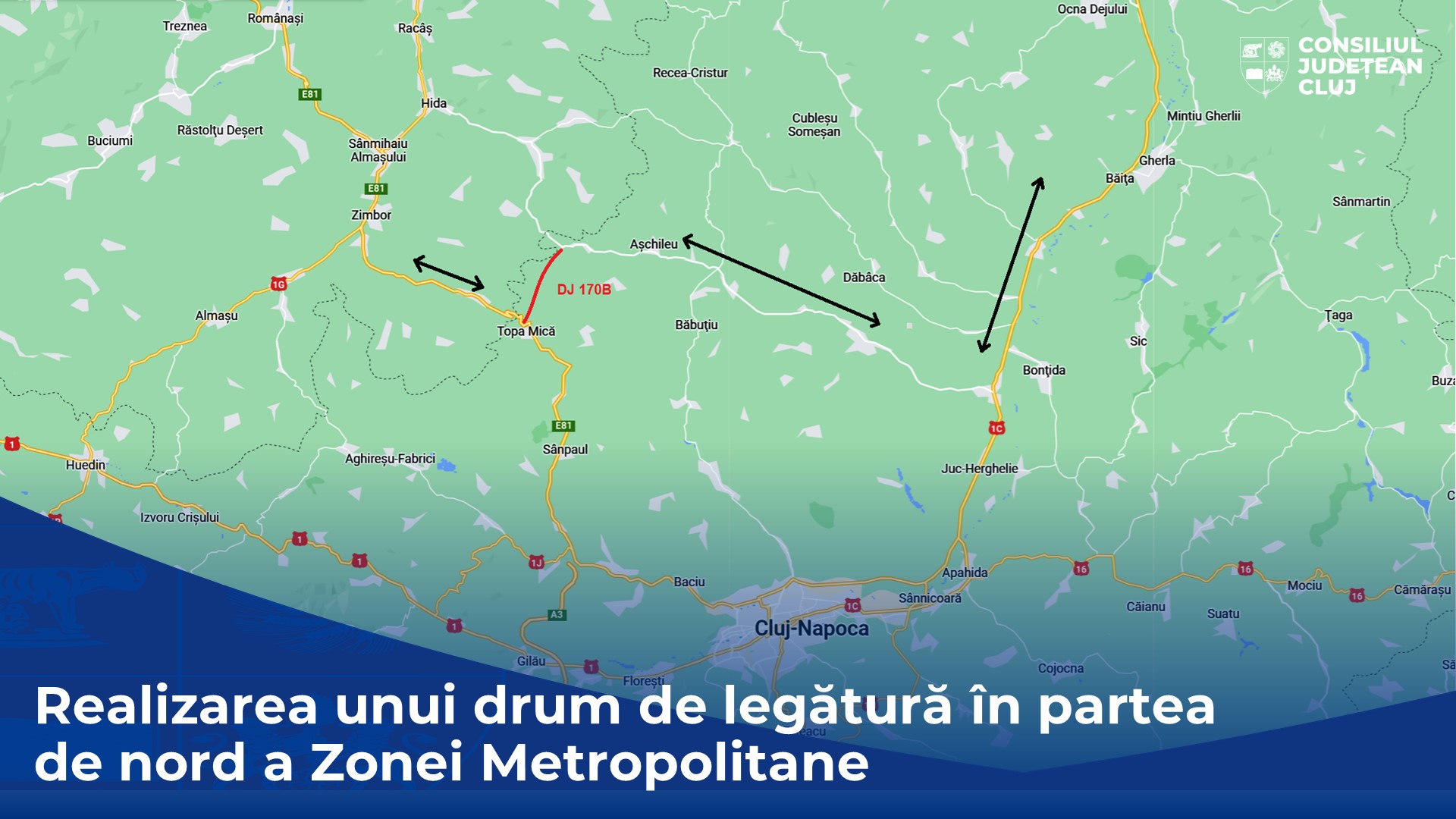 Este vorba despre ”realizarea unui drum de legătură, o mini-centură între DJ109 (comuna Așchileu) și Drumul Național 1F (drumul de la Sălaj spre Cluj), la Topa Mică. Este de fapt o variantă de ocolire a municipiului Cluj-Napoca prin partea de Nord. Noi tot vorbim de partea de Sud, dar mai este și acea parte care nu are o centură”, a precizat președintele Consiliului Județean Cluj, Alin Tișe.