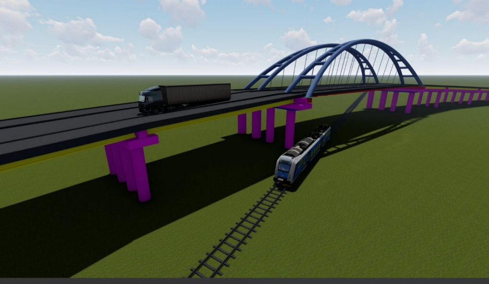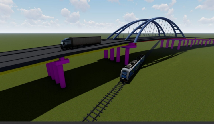 - Structură: mixtă oțel-beton, de tip arc cu tirant