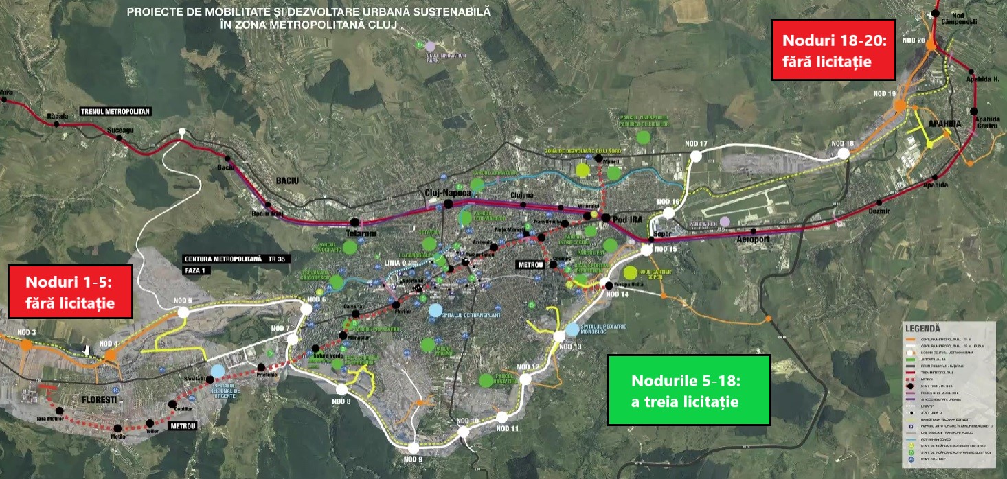 În final, o mențiune: nu s-au licitat încă segmente importante din centură, astfel încât să devină complet funcțională. De exemplu, între nodurile 1 și 5 s-a așternut batista pe țambal, spre disperarea celor 60.000 floreșteni care fac naveta spre centrul orașului. Capătul estic, nodurile 18-20, nu este nici el lansat.