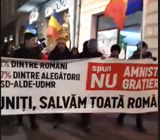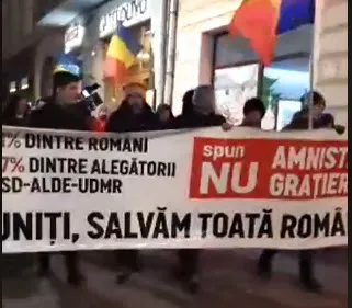 Protestul a avut loc pe Bulevardul Eroilor din Cluj-Napoca. Oamenii au venit cu pancarte precum ”Fără amnistie, fără graţiere”. ”91% dintre români, 87% dintre alegătorii PSD-ALDE-UDMR spun Nu amnistiei şi graţierii. Uniţi, salvăm toată România”.