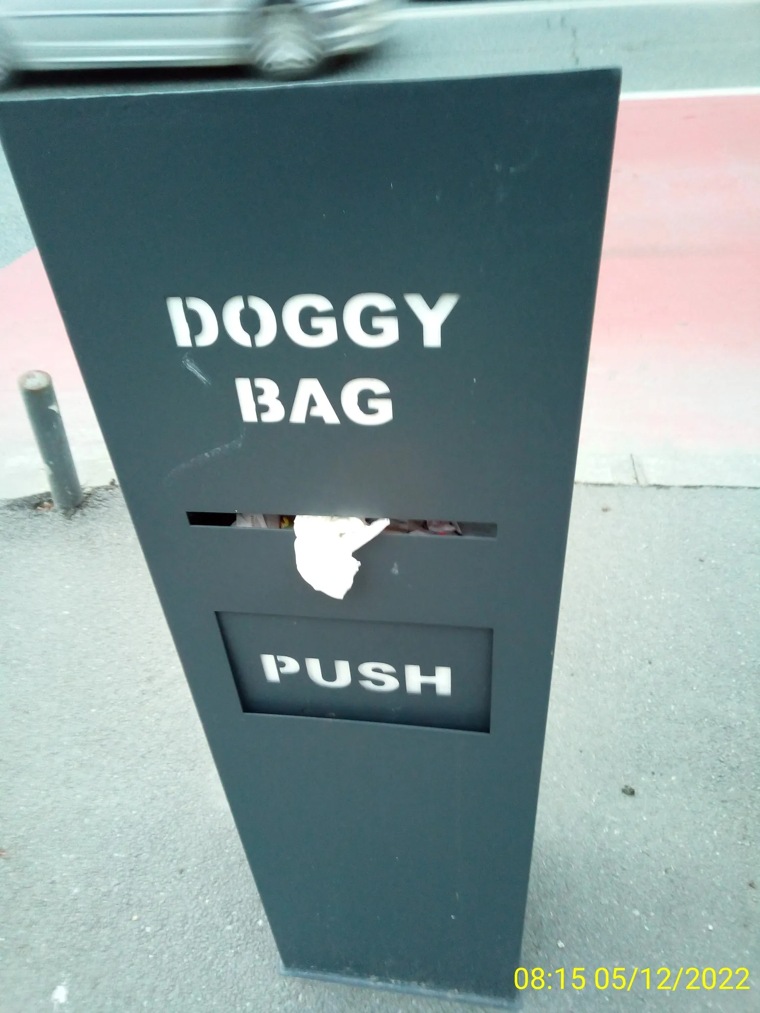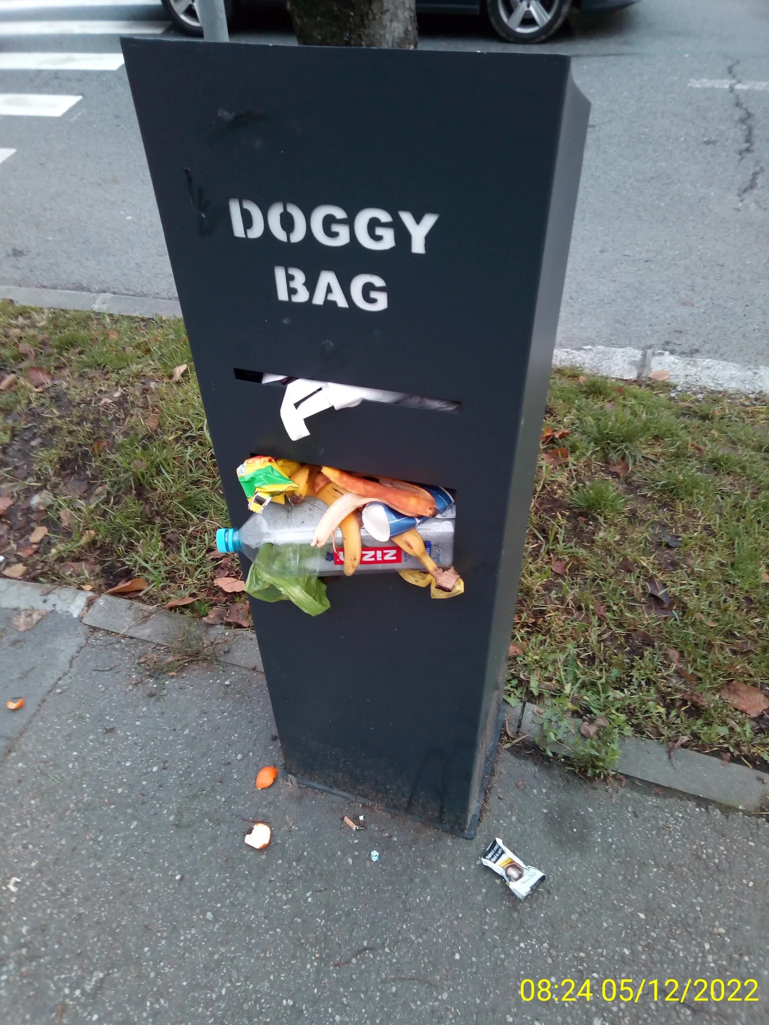 Unul în care USR a semnalat buba, a cerut soluții și s-a creat o soluție, pardon, cârpeală la această temă, în care mesajul este eronat din capul locului, bașca e și în engleză ? (de fapt înseamnă pungă cu resturi alimentare de la restaurant).