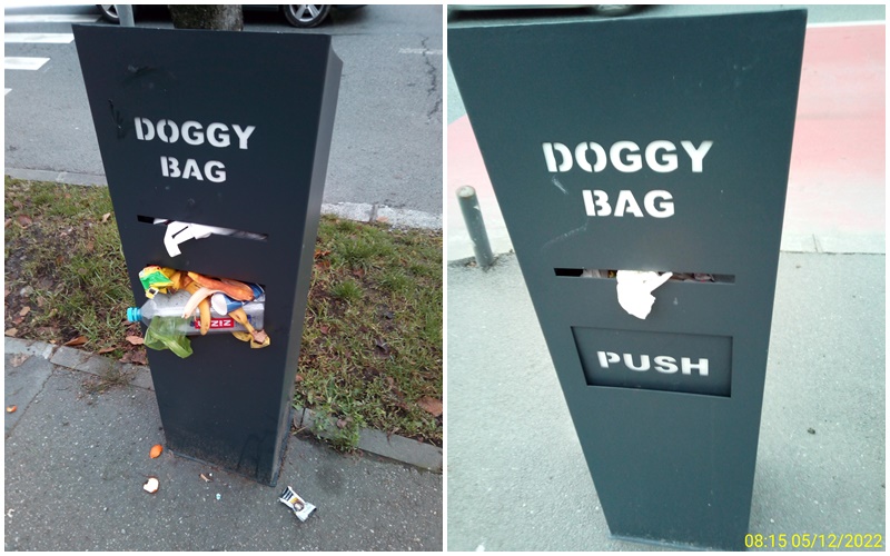 Cluj - Atât s-a putut. Coșurile de gunoi cu pungi pentru câini, folosite pe post de tomberon - FOTO