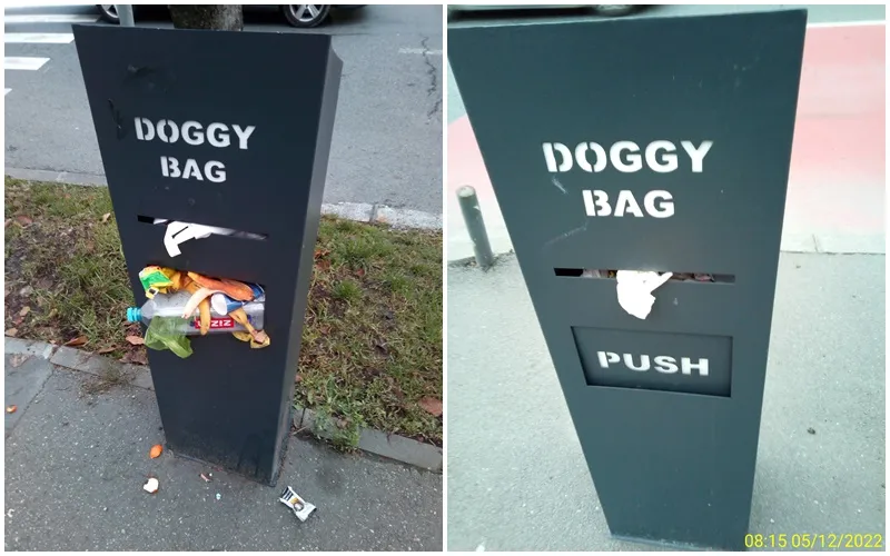 Coșurile cu pungi pentru proprietarii de câini sunt folosite pe post de tomberon de clujeni.