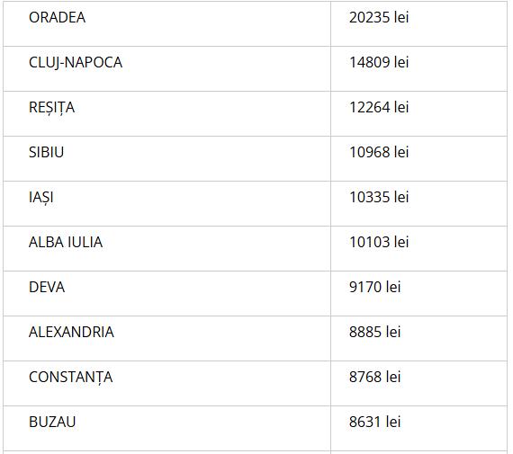 Pe primul loc în clasament se află Oradea, cu un buget de 20235 lei/persoană, deci cu 36% mai mare decât Cluj-Napoca. Pe poziția a treia se situează Reșița, cu 12264 lei/locuitor în 2025. Urmează Sibiu, Iași și Alba iulia, toate având venituri de circa 10 000 lei /persoană.