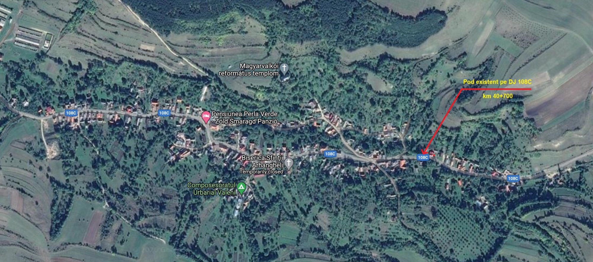 Consiliul Județean Cluj anunță că a finalizat licitația pentru proiectarea și execuția unui nou pod, amplasat pe drumul județean 108C, la km 40+700, în localitatea Văleni, comuna Călățele.