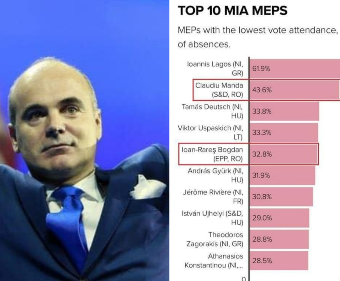 Clujeanul Rareș Bogdan are o rată de absenteism de 32.8% , potrivit unei analize făcute de politico.eu. Nici nu prea e de mirare că a lipsit atât, întrucât este prezent la mai toate ședințele de partid și la cele ale Coaliției de guvernare.