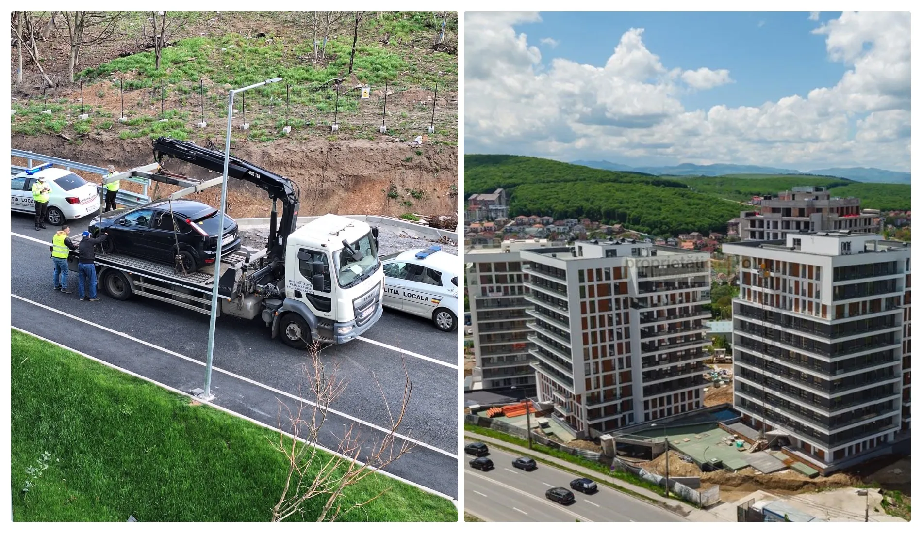 Clujenii mutați în turnurile de pe Frunzișului s-au trezit cu mașinile ridicate, deși drumul e proprietate privată - FOTO