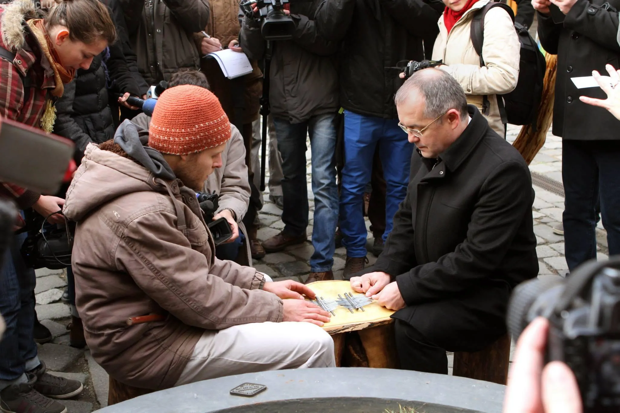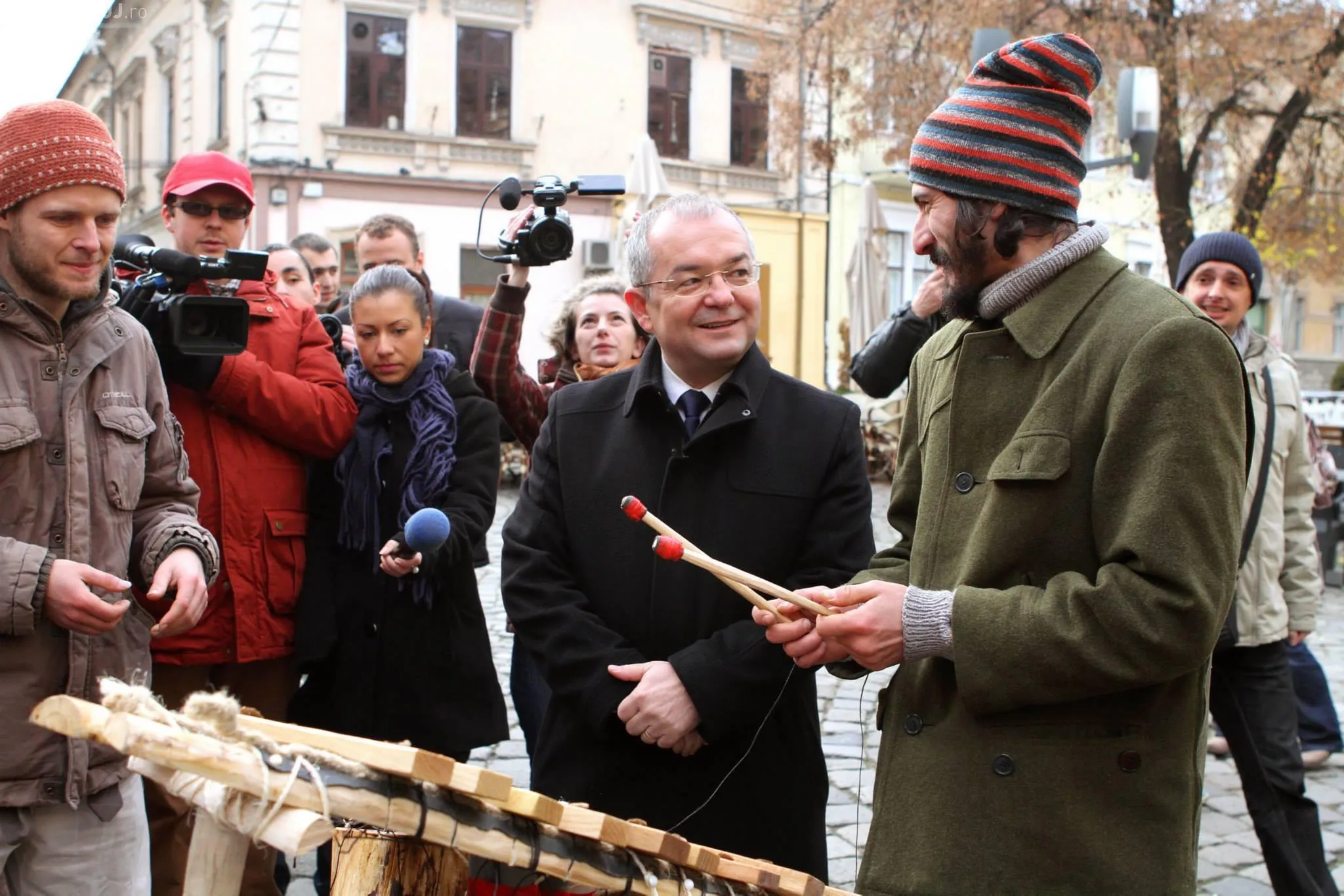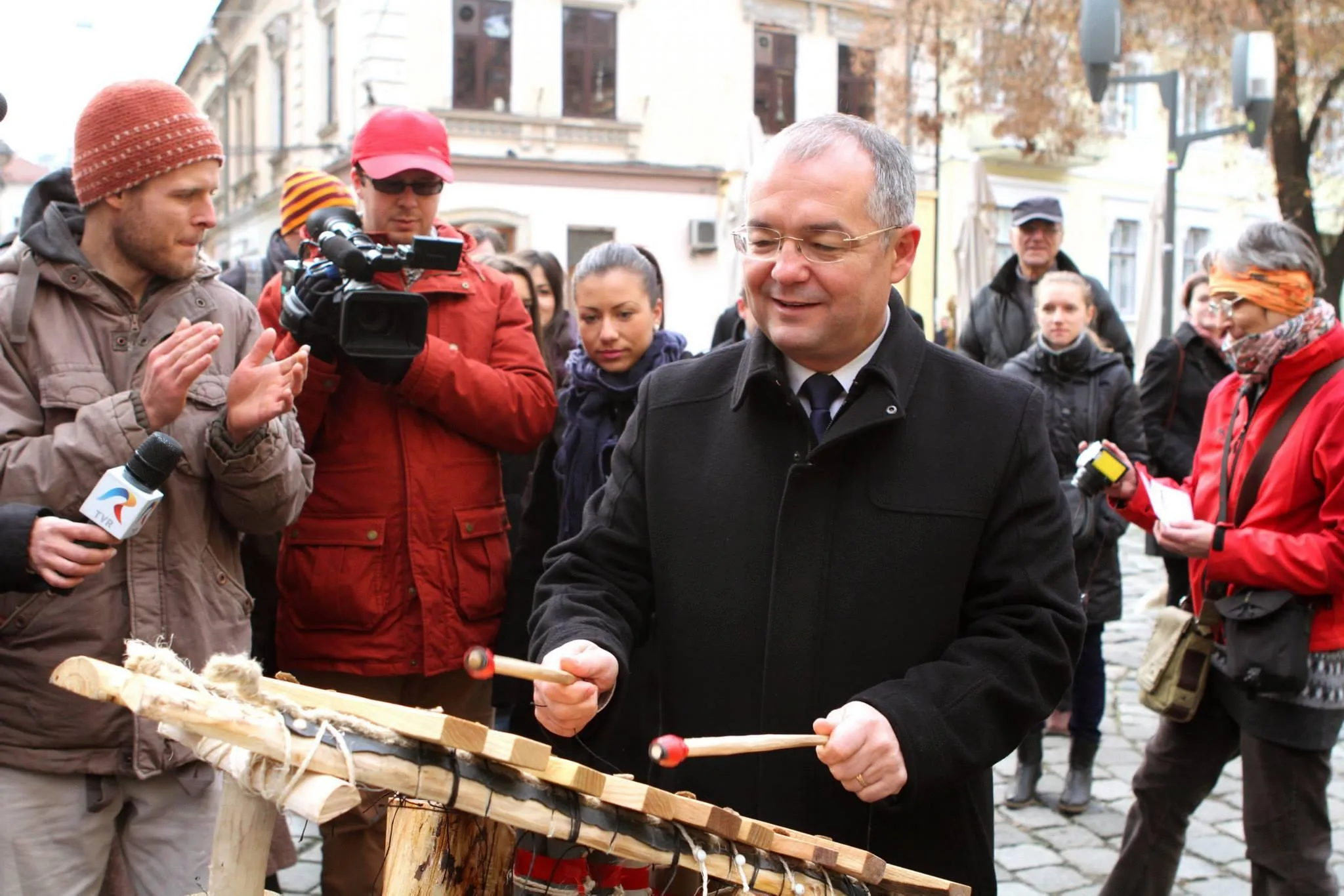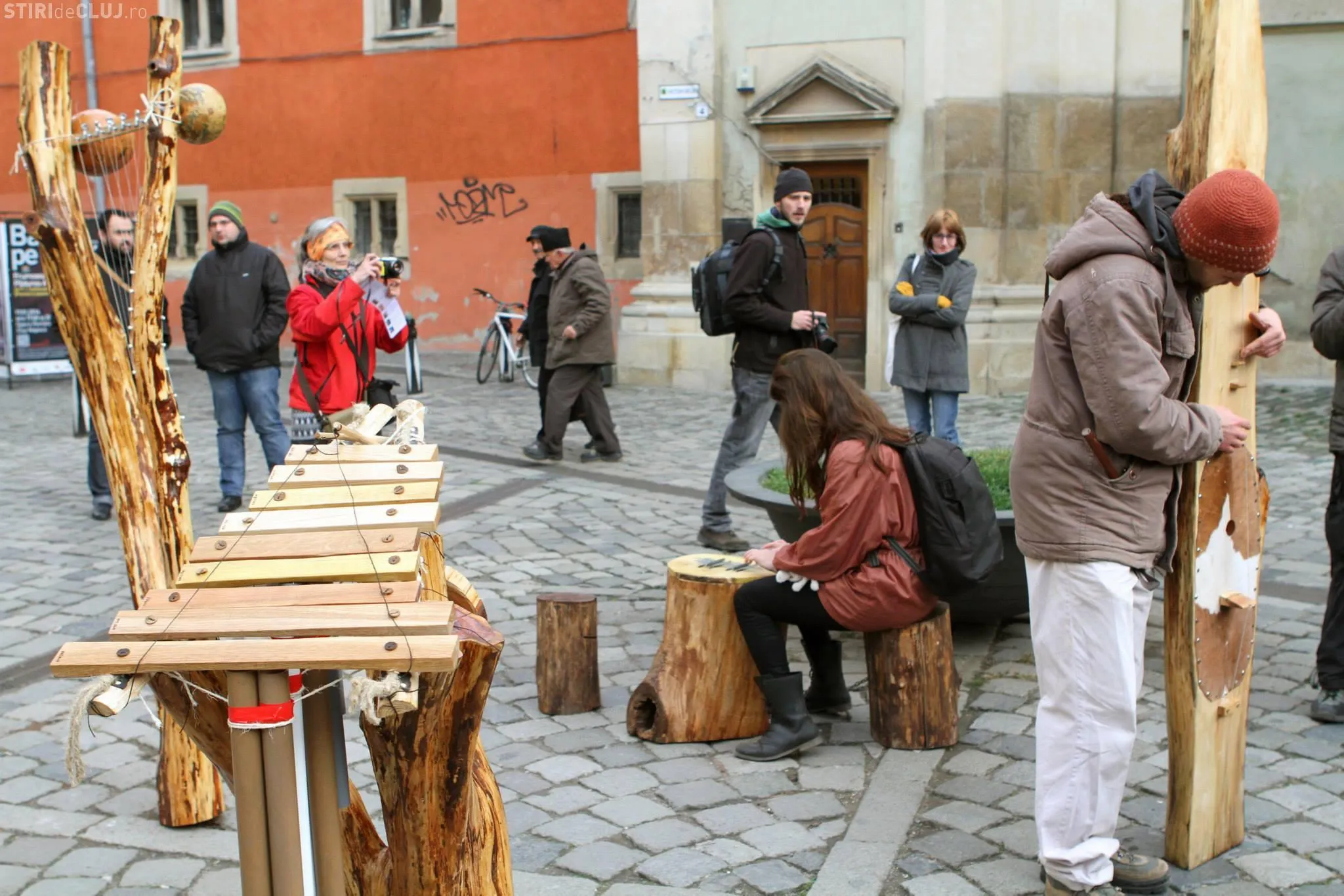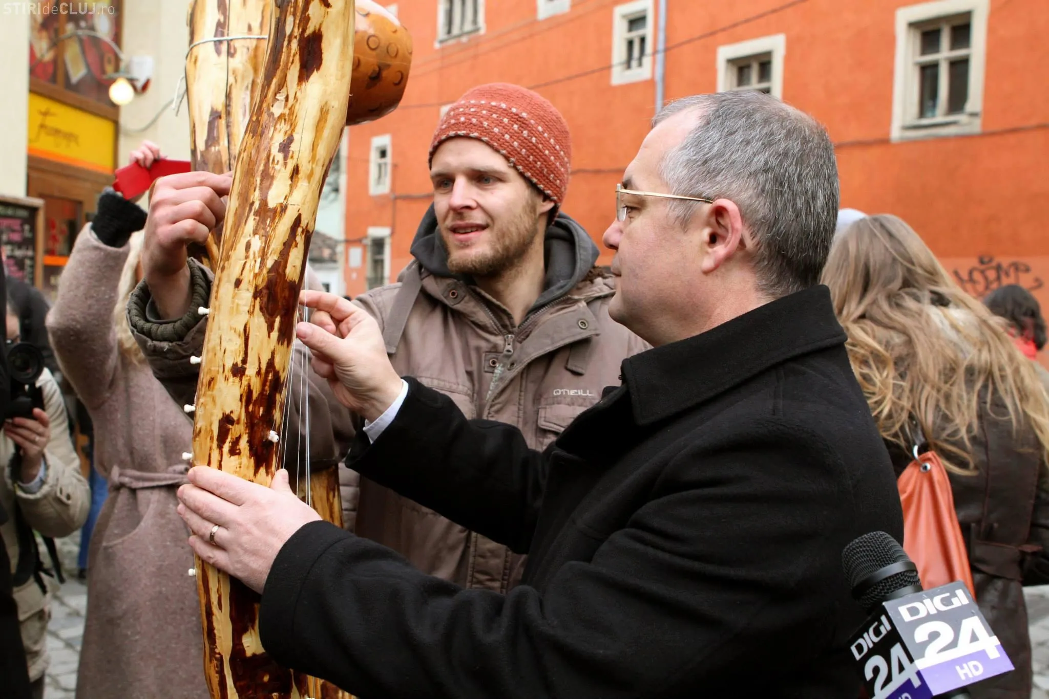 Clujenii pot cânta la instrumente în Piața Muzeului. Emil Boc a cântat la țambal și harpă - FOTO