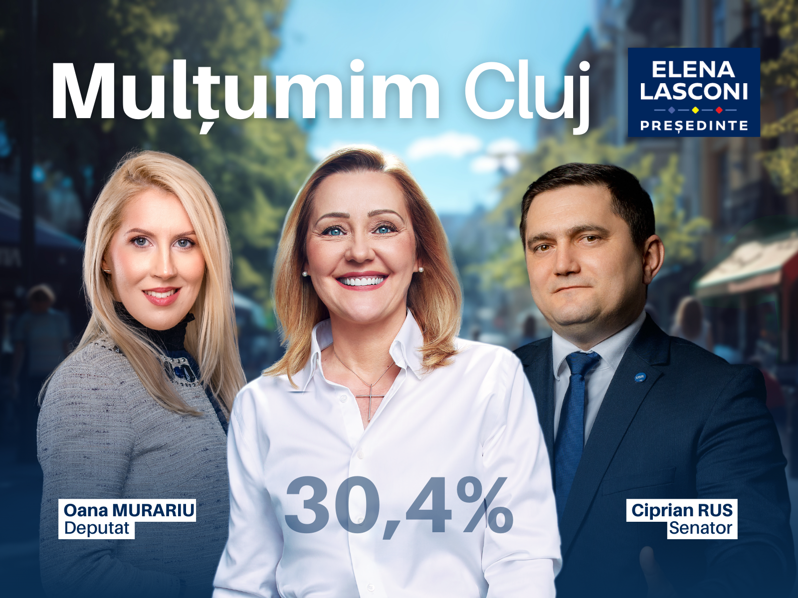 Clujul, locul 1 pe țară la voturile acordate Elenei Lasconi. Puterea stă în votul tău!