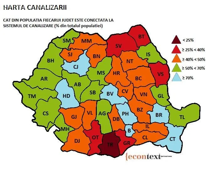 Clujul, pe locul 1 in tara in privinta gospodariilor care au dus sau toaleta in casa! VEZI harta