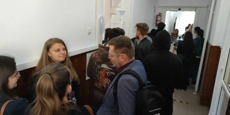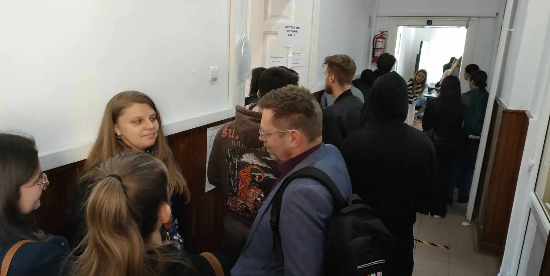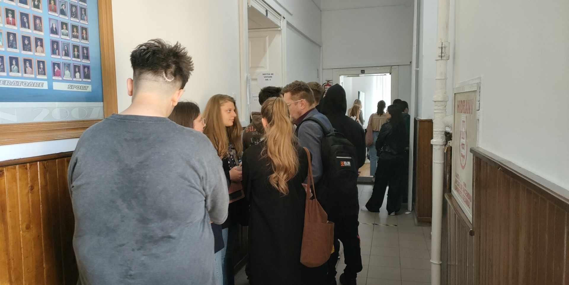 La Liceul „Augustin Maior” din Cluj-Napoca, unde funcționează secțiile de votare 3 și 4, situate pe Calea Moților, alegătorii arondați acestor secții, împreună cu numeroși studenți, au stat la coadă pentru a-și exercita dreptul la vot.
